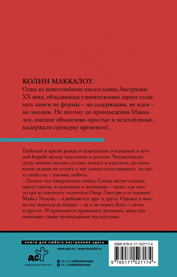Объем, стр. 384 ISBN 978-5-17-152717-4 Автор Маккалоу Колин, Агаянц Виктория Ивановна Переводчик Агаянц Виктория Ивановна Серия Классическая и современная проза Язык Русский Минимальный возраст 16+ Год издания книги 2022 Тип обложки Мягкий переплет Иллюстрации Без иллюстраций Вес, г 236г Размеры 180х115х28 мм - Отзывы