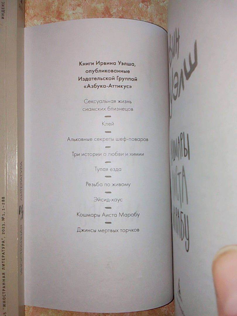 --Ирвин Уэлш: Кошмары Аиста МарабуРусская классическая и современная литератураЗарубежная художественная литератураРусская художественная литератураФэнтезиДраматургияПоэзияПриключенияФантастикаЭпос и фольклорКлассическая прозаАфоризмыИсторическая прозаДетективыБасниСентиментальная прозаОтечественный боевикСовременная прозаМолодежная литератураЗарубежная классическая и современная литература