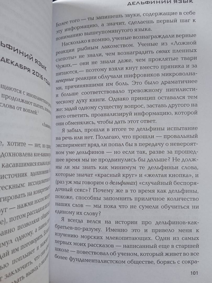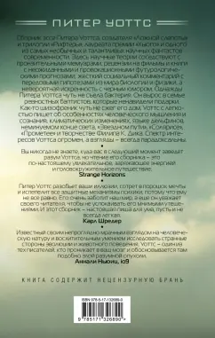 ОписаниеСборник эссе Питера Уоттса, создателя "Ложной слепоты" и трилогии "Рифтеры", лауреата премии "Хьюго" и одного из самых необычных и талантливых научных фантастов современности. Здесь научные теории соседствуют с пронзительными мемуарами, рецензии на фильмы и книги с неожиданными и провокационными футурологическими прогнозами, жесткий социальный комментарий с передовыми гипотезами из мира биологии и физики, а невероятная искренность с черным юмором. Однажды Питера Уоттса чуть не съела бактерия. Он вырос в семье ревностных баптистов, которые ненавидели подарки. Как-то шизофреник чуть не сжег его дом. Уоттс с легкостью пишет об особенностях человеческого мышления и сознания, климатических изменениях, языке дельфинов, неминуемом конце света, "Звездном пути", "Солярисе", "Прометее" и творчестве Филипа К. Дика. Спектр интересов Уоттса огромен, а взгляды - всегда парадоксальны.Пятьдесят разгневанных эссе от одного из лучших авторов научной фантастики, морского биолога и лауреата премии Хьюго. Наверняка вы хоть раз в жизни хотели бы поговорить с ученым человеком, понимающим основы мироздания, о жизни и смерти, книгах, кино, об обыденных вещах? Приходило в голову? Наверняка вы хотели бы услышать от такого человека ответ на вопрос, куда катится этот мир? Спойлер: в ответе будет много нецензурной лексики.