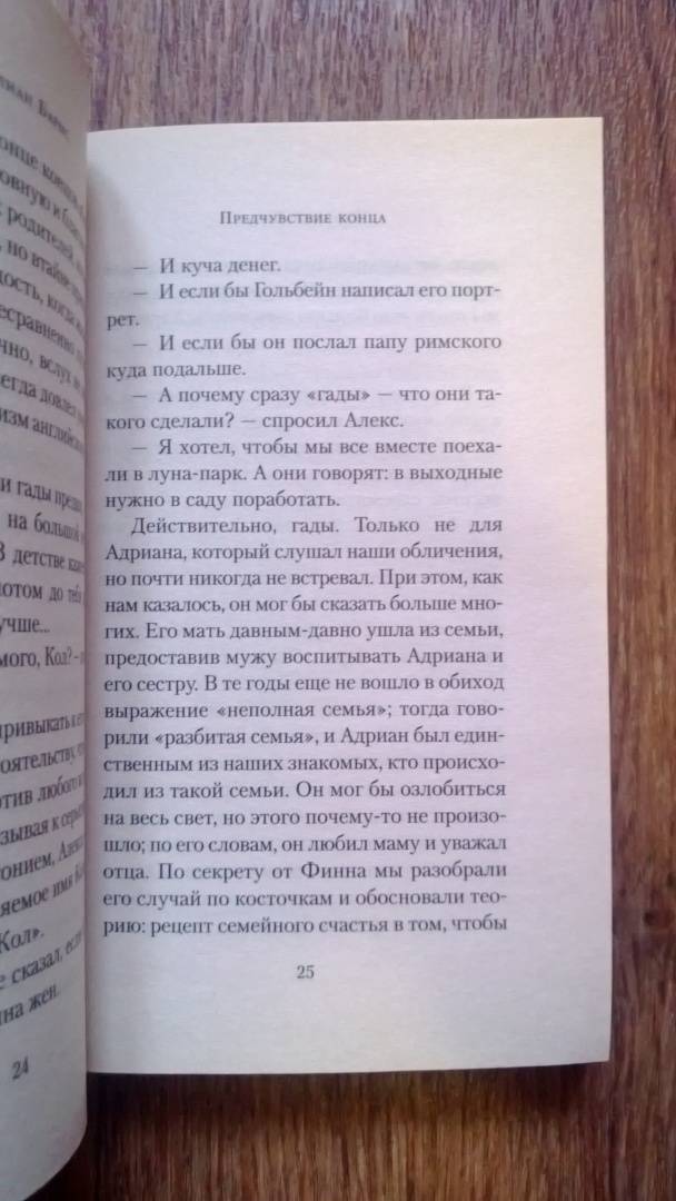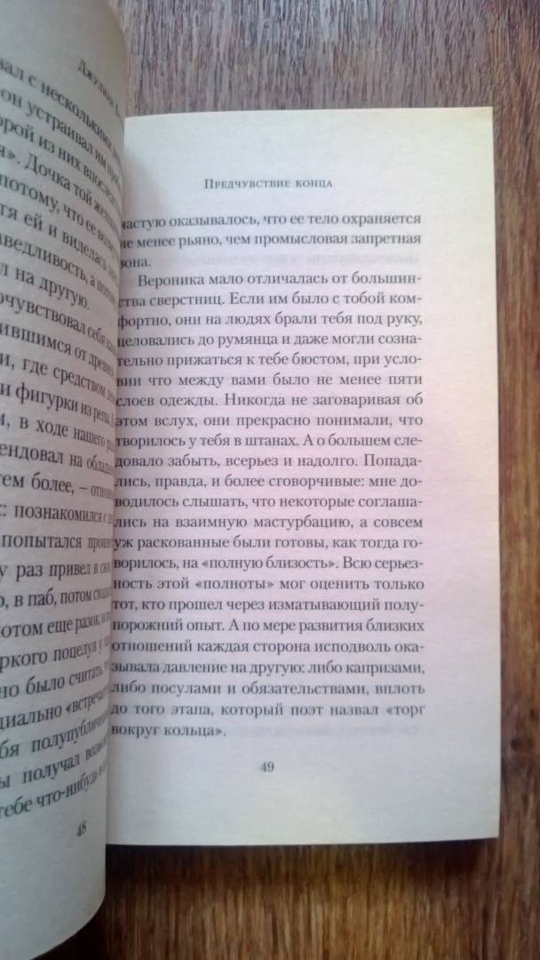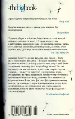В 2017 году в мировой прокат выходит киноверсия этого романа. Главные роли в фильме исполнили Шарлотта Рэмплинг, Джим Бродбент, Мишель Докери, Эмили Мортимер, Джо Элвин.СвернутьДжулиан Барнс — пожалуй, самый яркий и оригинальный прозаик современной Британии. А его роман «Предчувствие конца» получил Букеровскую премию — одну из наиболее престижных литературных наград в мире. Возможно, основной талант Барнса — умение легко и естественно играть в своих произведениях стилями и направлениями. Тонкая стилизация и едкая ирония, утонченный лиризм и доходящий до цинизма сарказм, агрессивная жесткость и веселое озорство — Барнсу подвластно все это и многое другое.