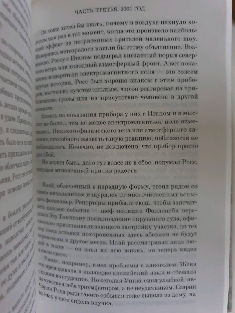 ОписаниеСтранный выдался август для жителей маленького североамериканского городка: то и дело с неба падают белые лепестки, температура летом внезапно понижается на десяток градусов, в полдень трескаются фарфоровые тарелки, в полночь расцветают розы, а в заброшенном доме на участке, где хотят построить новый торговый центр, вспыхивают тревожные огни. Говорят, это проделки призрака, который хозяйничает на этой земле и намерен помешать строительству, поскольку здесь находятся старые индейские захоронения. И если призрак — это что-то эфемерное, то помехи совершенно реальные. Застройщик обращается с жалобой в полицию, и местному детективу ничего не остается, как отложить важные дела и заняться этой пустячной проблемой. Но по мере расследования становится ясно, что в этом доме, на этом участке земли, в этом тихом безвестном городке и вправду происходит нечто невероятное и непостижимое, а все нити ведут к жестокому преступлению, совершенному семьдесят лет назад…Странный выдался август для жителей маленького североамериканского городка: то и дело с неба падают белые лепестки, температура летом внезапно понижается на десяток градусов, в полдень трескаются фарфоровые тарелки, в полночь расцветают розы, а в заброшенном доме на участке, где хотят построить новый торговый центр, вспыхивают тревожные огни. Говорят, это проделки призрака, который хозяйничает на этой земле и намерен помешать строительству, поскольку здесь находятся старые индейские захоронения. И если призрак — это что-то эфемерное, то помехи совершенно реальные. Застройщик обращается с жалобой в полицию, и местному детективу ничего не остается, как отложить важные дела и заняться этой пустячной проблемой. Но по мере расследования становится ясно, что в этом доме, на этом участке земли, в этом тихом безвестном городке и вправду происходит нечто невероятное и непостижимое, а все нити ведут к жестокому преступлению, совершенному семьдесят лет назад…