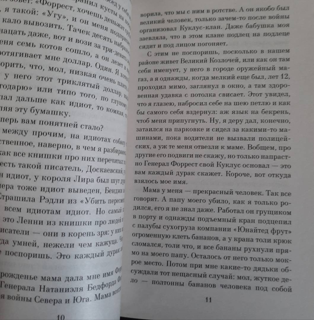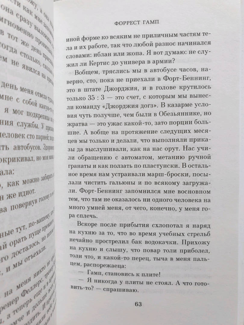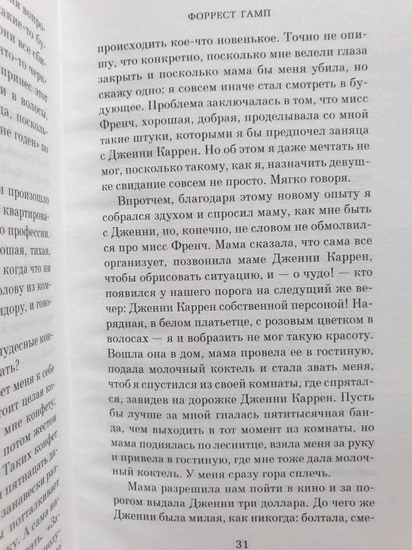 Роман публикуется в новом переводе."Мир уже никогда не будет прежним после того, как вы его увидите глазами Форреста Гампа" - гласил слоган к знаменитому фильму Роберта Земекиса с Томом Хэнксом и Робин Райт в главных ролях, номинированному на тринадцать "Оскаров", получившему шесть и ставшему одной из самых кассовых картин в истории кинематографа. Те же слова в полной мере применимы и к роману Уинстона Грума, легшему в основу фильма. "Жизнь идиота - это вам не коробка шоколадных конфет", - заявляет Форрест в первых же строчках, и он знает, что говорит (даже если в фильме смысл этой фразы изменился на едва ли не противоположный). Что бы с Форрестом ни случалось и куда бы его ни заносило (во Вьетнам и в Китай, на концертную сцену и на борцовский ринг, в Белый дом и в открытый космос), через всю жизнь он пронес любовь к Дженни Каррен и способность удивлять окружающих - ведь он "идиот, зато не тупой"...