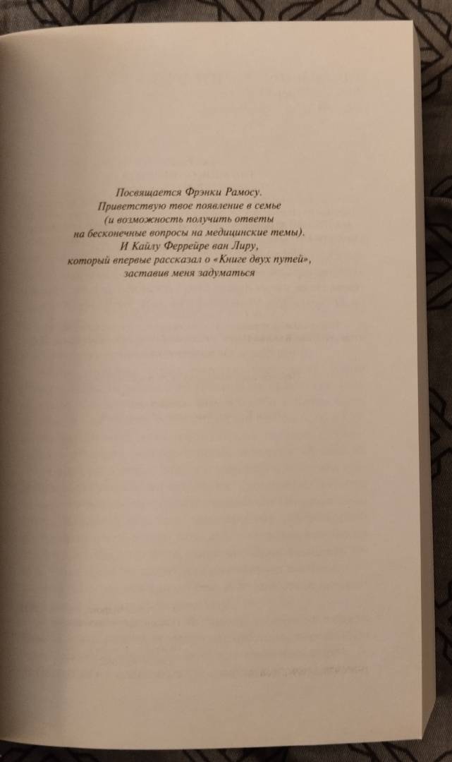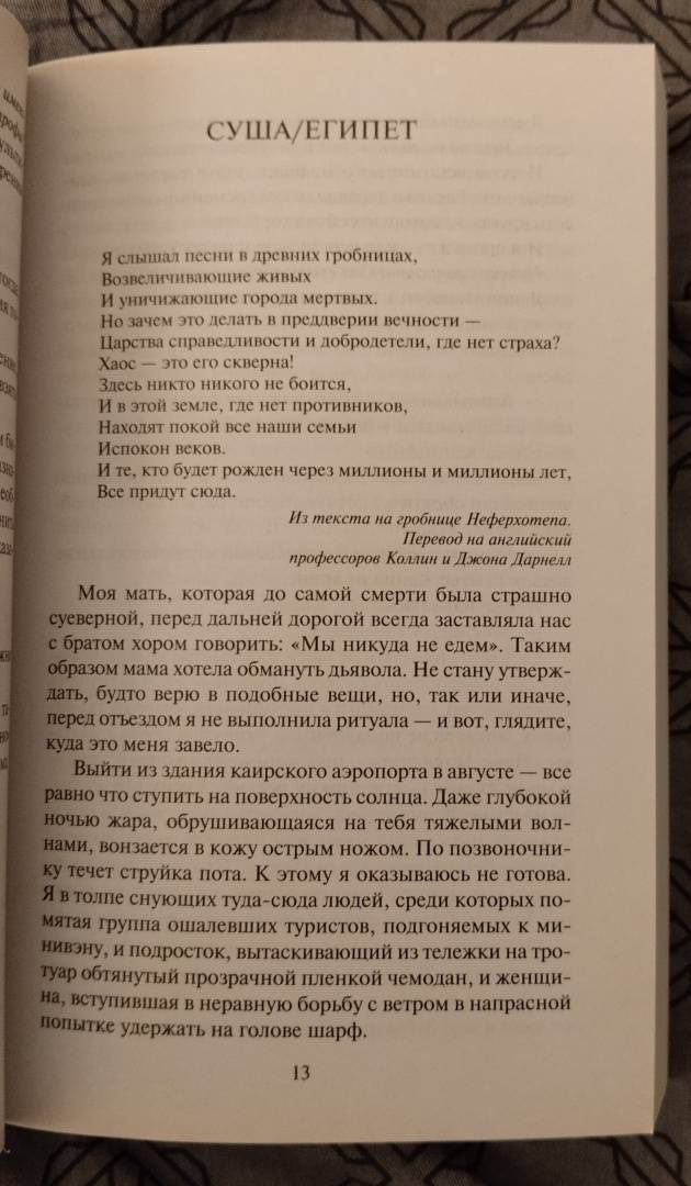 ОписаниеДороги, которые мы выбираем… Дон, в прошлом аспирант-египтолог, а нынче доула смерти, которая помогает своим клиентам смириться с неизбежностью перехода в мир иной, волею судеб оказывается в Египте, где пятнадцать лет назад работала на раскопках древних гробниц и встретила свою первую любовь. И совсем как в "Книге двух путей", древнеегипетской карте загробного мира, перед Дон открываются два пути. Она должна решить, что для нее важнее: комфортное существование с заботливым мужем или полное неопределенности возвращение в прошлое, к любимой работе и покинутому возлюбленному, которого она так и не смогла забыть. По мере развития сюжета всплывают давно похороненные секреты и возникают новые вопросы. Что такое хорошо прожитая жизнь? Что мы оставляем после себя, покидая эту землю? Делаем ли мы выбор... или судьба делает выбор за нас?Дороги, которые мы выбираем… Дон, в прошлом аспирант-египтолог, а нынче доула смерти, которая помогает своим клиентам смириться с неизбежностью перехода в мир иной, волею судеб оказывается в Египте, где пятнадцать лет назад работала на раскопках древних гробниц и встретила свою первую любовь. И совсем как в "Книге двух путей", древнеегипетской карте загробного мира, перед Дон открываются два пути. Она должна решить, что для нее важнее: комфортное существование с заботливым мужем или полное неопределенности возвращение в прошлое, к любимой работе и покинутому возлюбленному, которого она так и не смогла забыть. По мере развития сюжета всплывают давно похороненные секреты и возникают новые вопросы. Что такое хорошо прожитая жизнь? Что мы оставляем после себя, покидая эту землю? Делаем ли мы выбор... или судьба делает выбор за нас?