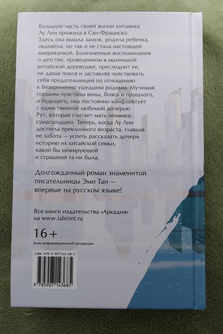 ОписаниеБольшую часть своей жизни китаянка Лу Лин прожила в Сан-Франциско. Здесь она вышла замуж, родила ребенка, овдовела, но так и не стала настоящей американкой. Болезненные воспоминания о детстве, проведенном в маленькой китайской деревушке, преследуют ее, не давая покоя и заставляя чувствовать себя предательницей по отношению к безвременно ушедшим родным. Мучимая горьким чувством вины, боясь и прошлого, и будущего, она постоянно конфликтует с единственной любимой дочерью Рут, которая считает мать немного сумасшедшей. Теперь, когда Лу Лин достигла преклонного возраста, главная ее забота - успеть рассказать дочери историю их китайской семьи, какой бы шокирующей и страшной та ни была.Долгожданный роман знаменитой писательницы Эми Тан - теперь на русском!Большую часть своей жизни китаянка Лу Лин прожила в Сан-Франциско. Здесь она вышла замуж, родила ребенка, овдовела, но так и не стала настоящей американкой. Болезненные воспоминания о детстве, проведенном в маленькой китайской деревушке, преследуют ее, не давая покоя и заставляя чувствовать себя предательницей по отношению к безвременно ушедшим родным. Мучимая горьким чувством вины, боясь и прошлого, и будущего, она постоянно конфликтует с единственной любимой дочерью Рут, которая считает мать немного сумасшедшей. Теперь, когда Лу Лин достигла преклонного возраста, главная ее забота - успеть рассказать дочери историю их китайской семьи, какой бы шокирующей и страшной та ни была.Долгожданный роман знаменитой писательницы Эми Тан - теперь на русском!
