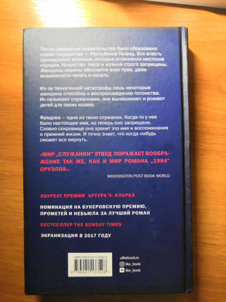 ОписаниеПосле свержения правительства было образовано новое государство - Республика Галаад. Вся власть принадлежит военным, которые установили жестокие порядки. Искусство, театр и музыка строго запрещены. Женщины лишены абсолютно всех прав, даже возможности читать и писать. Из-за техногенной катастрофы лишь некоторые женщины способны к воспроизведению потомства. Их называют служанками, они вынашивают и рожают детей для своих хозяев. Фредова – одна из таких служанок. Когда-то у нее было настоящее имя, но теперь оно запрещено. Словно сокровище она хранит это имя и воспоминания о прежней жизни. И точно знает, что когда-нибудь сможет все вернуть.После свержения правительства было образовано новое государство - Республика Галаад. Вся власть принадлежит военным, которые установили жестокие порядки. Искусство, театр и музыка строго запрещены. Женщины лишены абсолютно всех прав, даже возможности читать и писать. Из-за техногенной катастрофы лишь некоторые женщины способны к воспроизведению потомства. Их называют служанками, они вынашивают и рожают детей для своих хозяев. Фредова – одна из таких служанок. Когда-то у нее было настоящее имя, но теперь оно запрещено. Словно сокровище она хранит это имя и воспоминания о прежней жизни. И точно знает, что когда-нибудь сможет все вернуть.