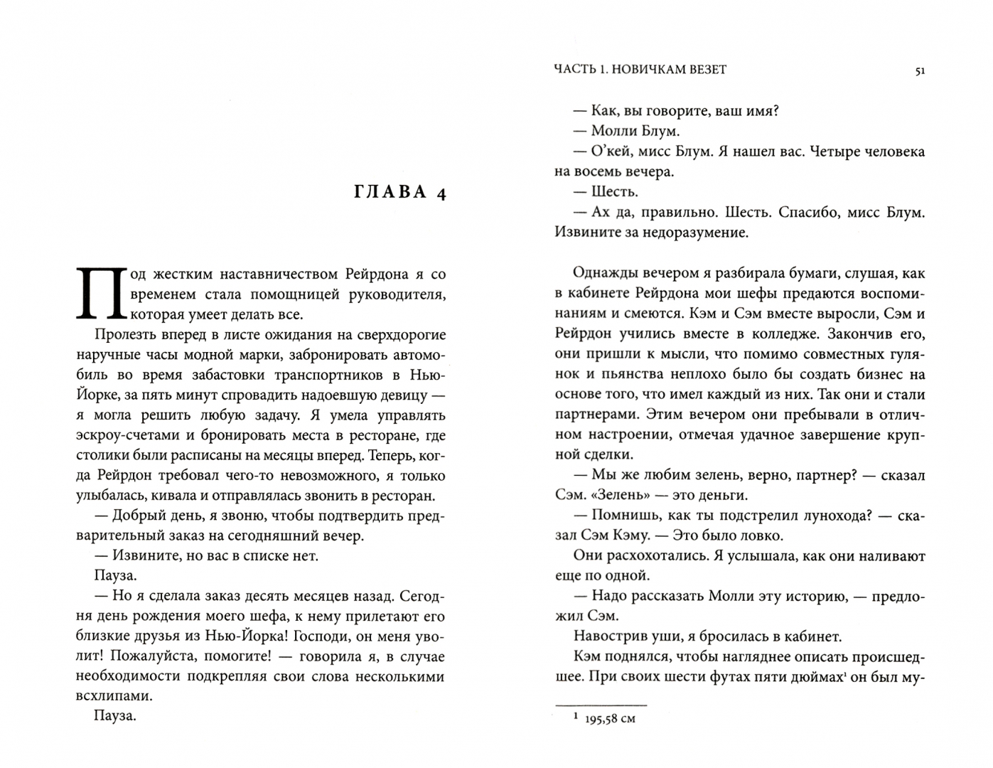 ОписаниеМолли Блум - милая брюнетка из Колорадо, в юности она занималась спортом, но никак не могла дотянуться до самых высот. В конце 2000-х годов Молли перебралась в Голливуд и устроилась работать помощницей в финансовую контору, начальник которой организовывал закрытые турниры по покеру для богатых калифорнийцев. Разобравшись, как устроен мир покера за закрытыми дверями, Молли решила сама попытаться организовать карточный турнир, переманив всех клиентов у бывшего босса. И тут началась Большая Игра! За столами Молли выигрывались и терялись сотни миллионов долларов; знаменитости, обласканные светом софитов и вспышками фотокамер, не пропускали ни одной встречи у Молли, а ставок выше Голливуд еще не видел никогда. Игра Молли стала досугом, о котором мечтали все, а допускались лишь избранные. Молли построила покерную империю, стать частью которой мечтали все. "Большая игра" - закулисный взгляд на величайшую карточную империю современности, а также на все опасности, деньги, людей, победы и поражения, связанные с движением на самый верх.СвернутьМолли Блум - милая брюнетка из Колорадо, в юности она занималась спортом, но никак не могла дотянуться до самых высот. В конце 2000-х годов Молли перебралась в Голливуд и устроилась работать помощницей в финансовую контору, начальник которой организовывал закрытые турниры по покеру для богатых калифорнийцев. Разобравшись, как устроен мир покера за закрытыми дверями, Молли решила сама попытаться организовать карточный турнир, переманив всех клиентов у бывшего босса. И тут началась Большая Игра! За столами Молли выигрывались и терялись сотни миллионов долларов; знаменитости, обласканные светом софитов и вспышками фотокамер, не пропускали ни одной встречи у Молли, а ставок выше Голливуд еще не видел никогда. Игра Молли стала досугом, о котором мечтали все, а допускались лишь избранные. Молли построила покерную империю, стать частью которой мечтали все. "Большая игра" - закулисный взгляд на величайшую карточную империю современности, а также на все опасности, деньги, людей, победы и поражения, связанные с движением на самый верх.СвернутьСвернуть