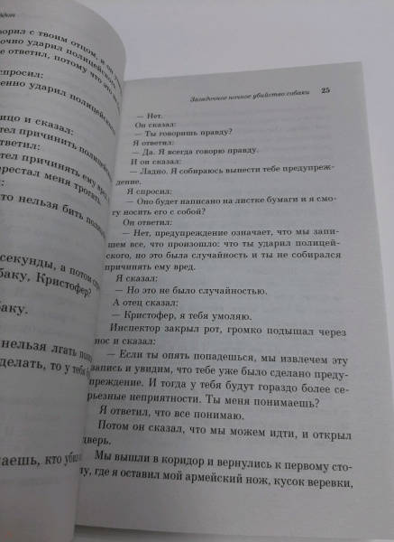 СвернутьПятнадцатилетний Кристофер Бун - аутист. Он талантливый математик и очень умный парень, вот только его цепкая память и живой ум совсем не помогают ему в жизни. Пока однажды, если быть точными, в семь минут первого ночи, его не застают на заднем дворе соседей. Рядом лежит обезображенный пес. Теперь Кристофер подозреваемый! Сможет ли мальчик провести расследование и доказать окружающим, что он не имеет никакого отношения к смерти беззащитного животного. Или имеет?Кристофер не любит желтый и коричневый цвета, не может находиться в толпе и не терпит прикосновений. Он математический гений и, чтобы успокоиться, возводит 2 в