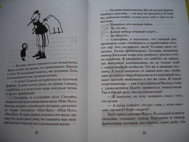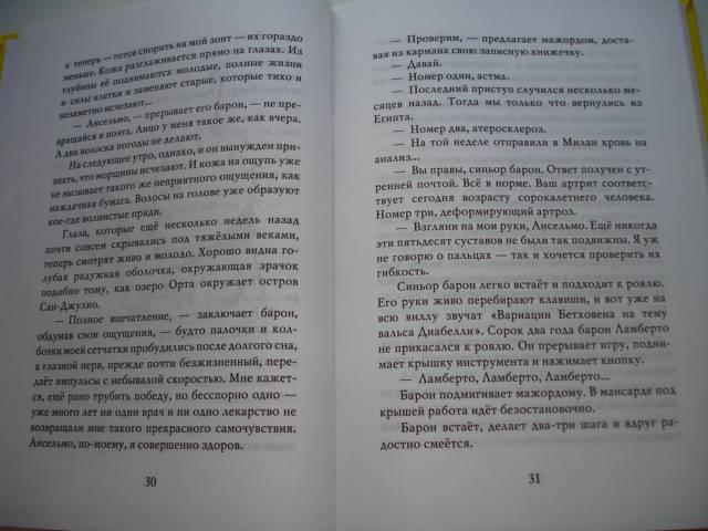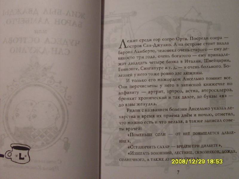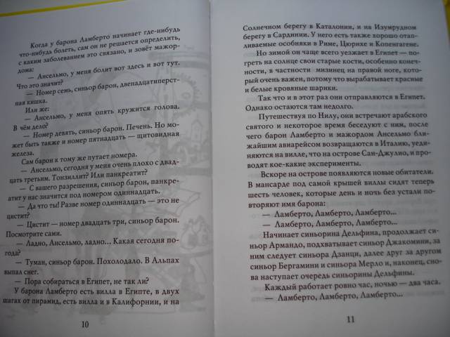ОписаниеДействующие лица:Барон ЛабертоАнсельмо - его камердинерОттавио - беспутный племянник баронаШестеро таинственных слуг, живущих в мансардеДвадцать четыре человека, которых тоже зовут ЛамбертоДвадцать четыре директора банков (все с личными секретарями)Лодочник Дуилио по прозвищу ХаронСкауты, журналисты, фотографы, полицейские, зеваки, мальчишки, радиолюбителиМесто действия: Италия, остров Сан-Джулио и его окрестности.Время действия: вторая половина XX века.Барон Ламберто, дряхлый старик, владеющий несметными богатствами, узнаёт от странствующего мудреца тайну бессмертия фараонов: "Человек, имя которого непрестанно на устах, продолжает жить". Практический ум барона трактует эту фразу буквально, и вскоре на остров Сан-Джулио прибывают шестеро неизвестных, задача которых - продлевать жизнь барона до бесконечности. Но тут в дело вмешиваются третьи, четвёртые, стосорокдевятые и двухтысячные лица, и в результате барон Ламберто влипает в такую историю, которую ещё долго будут обсуждать во всех барах соседнего города Орта.СвернутьДействующие лица:Барон ЛабертоАнсельмо - его камердинерОттавио - беспутный племянник баронаШестеро таинственных слуг, живущих в мансардеДвадцать четыре человека, которых тоже зовут ЛамбертоДвадцать четыре директора банков (все с личными секретарями)Лодочник Дуилио по прозвищу ХаронСкауты, журналисты, фотографы, полицейские, зеваки, мальчишки, радиолюбителиМесто действия: Италия, остров Сан-Джулио и его окрестности.Время действия: вторая половина XX века.Барон Ламберто, дряхлый старик, владеющий несметными богатствами, узнаёт от странствующего мудреца тайну бессмертия фараонов: "Человек, имя которого непрестанно на устах, продолжает жить". Практический ум барона трактует эту фразу буквально, и вскоре на остров Сан-Джулио прибывают шестеро неизвестных, задача которых - продлевать жизнь барона до бесконечности. Но тут в дело вмешиваются третьи, четвёртые, стосорокдевятые и двухтысячные лица, и в результате барон Ламберто влипает в такую историю, которую ещё долго будут обсуждать во всех барах соседнего города Орта.СвернутьСвернуть