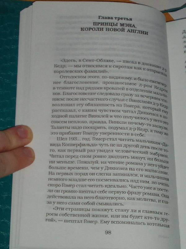 ОписаниеРоман-бестселлер, по мотивам которого был снят фильм, получивший две премии "Оскар" (2000 г.): за лучшую сценарную адаптацию (Джон Ирвинг) и лучшего актера второго плана (Майкл Кейн). Плюс еще пять номинаций, за лучший фильм и т. д.Главный герой, Гомер Уэллс, родился в приюте. Гинеколог Уилбер Ларч стал для мальчика приемным отцом и учителем. Он научил Гомера всему, что знал сам. Он передал ему доброту, способность сострадать чужой боли и горю. Выросшего в приюте Уэллса тянет в новые города, и тут представился случай. В приюте сделала аборт белокурая красавица Кэнди Кендолл, приехавшая с военным летчиком Уолли Уортингтоном. Они берут Гомера с собой. Он работает сборщиком яблок и увлечен Кэнди. Но их роман оказался коротким - Уолли вернулся парализованным, и Кэнди осталась с ним. Все это время доктор Ларч надеется, что Гомер вернется и займет его место, так как опасается, что вместо него начальство пришлет кого-нибудь, кто осуждает аборты - тогда женщины будут уродовать себя и убивать детей у подпольных самоучек и неграмотных бабок.Не станет доктора - Гомер возвратится и останется верен своему профессиональному долгу.Перевод с английского М.Д.Литвинова.СвернутьРоман-бестселлер, по мотивам которого был снят фильм, получивший две премии "Оскар" (2000 г.): за лучшую сценарную адаптацию (Джон Ирвинг) и лучшего актера второго плана (Майкл Кейн). Плюс еще пять номинаций, за лучший фильм и т. д.Главный герой, Гомер Уэллс, родился в приюте. Гинеколог Уилбер Ларч стал для мальчика приемным отцом и учителем. Он научил Гомера всему, что знал сам. Он передал ему доброту, способность сострадать чужой боли и горю. Выросшего в приюте Уэллса тянет в новые города, и тут представился случай. В приюте сделала аборт белокурая красавица Кэнди Кендолл, приехавшая с военным летчиком Уолли Уортингтоном. Они берут Гомера с собой. Он работает сборщиком яблок и увлечен Кэнди. Но их роман оказался коротким - Уолли вернулся парализованным, и Кэнди осталась с ним. Все это время доктор Ларч надеется, что Гомер вернется и займет его место, так как опасается, что вместо него начальство пришлет кого-нибудь, кто осуждает аборты - тогда женщины будут уродовать себя и убивать детей у подпольных самоучек и неграмотных бабок.Не станет доктора - Гомер возвратится и останется верен своему профессиональному долгу.Перевод с английского М.Д.Литвинова.СвернутьСвернуть