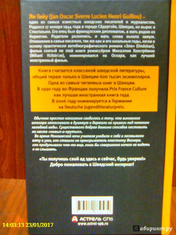ОписаниеКнига считается классикой шведской литературы, общий тираж только в Швеции 600 тысяч экземпляров. Одна из самых читаемых книг в Швеции. В 1990 году во Франции получила Prix France Culture как лучшая иностранная книга года. В 2006 году номинируется в Германии на Deutsche Jugendliteraturpreis. Обычное простое наказание сводилось к тому, что виновного школяра затаскивали в душевую и держали на привязи под потоком холодной воды. Существовала добрая дюжина способов поставить на место "новых-и-крутых." Во время Монашеской ночи учителя уходили к себе и засовывали вату в уши, или ставили на проигрыватель пластинку Вагнера, или придумывали что-то еще, лишь бы совершенно ничего не видеть и не слышать. "Ты получишь свой ад здесь и сейчас, будь уверен!" Добро пожаловать в Шведский интернат!Книга считается классикой шведской литературы, общий тираж только в Швеции 600 тысяч экземпляров. Одна из самых читаемых книг в Швеции. В 1990 году во Франции получила Prix France Culture как лучшая иностранная книга года. В 2006 году номинируется в Германии на Deutsche Jugendliteraturpreis. Обычное простое наказание сводилось к тому, что виновного школяра затаскивали в душевую и держали на привязи под потоком холодной воды. Существовала добрая дюжина способов поставить на место "новых-и-крутых." Во время Монашеской ночи учителя уходили к себе и засовывали вату в уши, или ставили на проигрыватель пластинку Вагнера, или придумывали что-то еще, лишь бы совершенно ничего не видеть и не слышать. "Ты получишь свой ад здесь и сейчас, будь уверен!" Добро пожаловать в Шведский интернат!