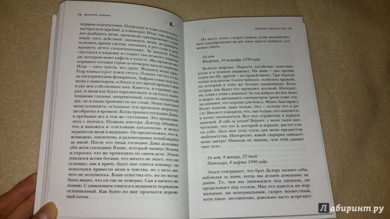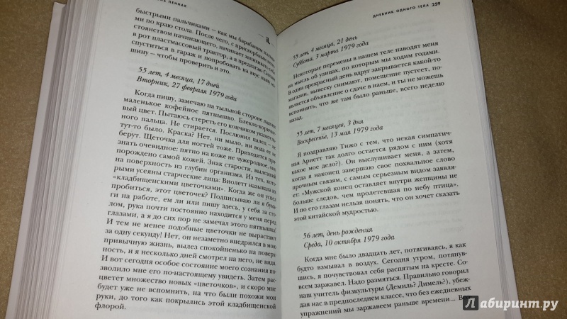 Описание"Дневник одного тела" - книга-провокация, книга-вызов. Герой Даниэля Пеннака ведет дневник своего тела - предельно откровенный, шокирующий. У него нет необходимости скрывать от самого себя слабости, фобии, низменные желания.День за днем он исследует собственное тело, свои ощущения и переживания.Мальчик - юноша - зрелый мужчина - старик. Каждый этап жизни героя сопровождается новыми открытиями, изменениями в его восприятии самого себя.И мы понимаем, как заблуждаются те, кто разделяет духовное и телесное, считая первое возвышенным, второе же - низким и обыденным. Душа и тело связаны, и, по сути, всю жизнь человека можно уложить в те изменения, которые происходят с его телом."Дневник одного тела" - книга-провокация, книга-вызов. Герой Даниэля Пеннака ведет дневник своего тела - предельно откровенный, шокирующий. У него нет необходимости скрывать от самого себя слабости, фобии, низменные желания.День за днем он исследует собственное тело, свои ощущения и переживания.Мальчик - юноша - зрелый мужчина - старик. Каждый этап жизни героя сопровождается новыми открытиями, изменениями в его восприятии самого себя.И мы понимаем, как заблуждаются те, кто разделяет духовное и телесное, считая первое возвышенным, второе же - низким и обыденным. Душа и тело связаны, и, по сути, всю жизнь человека можно уложить в те изменения, которые происходят с его телом.