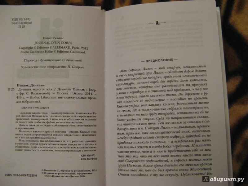 Объем, стр. 416 ISBN 978-5-699-72225-9 Автор Пеннак Даниэль, Васильева Серафима Юрьевна Переводчик Васильева Серафима Юрьевна Серия Index Librorum Минимальный возраст 18+ Год издания книги 2014 Тип обложки Твердый переплет Иллюстрации Без иллюстраций Вес, г 390г Размеры 206х131х27 мм - Отзывы