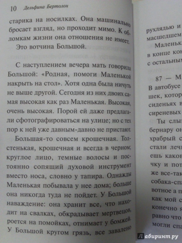 ОписаниеКак и в предыдущей своей книге, "Грас", Дельфина Бертолон показывает сложные отношения в семье. Большая и Маленькая, две сестры. Младшая мечтает об одиночестве, но еще мать ей говорила: "Если есть сестра, то от нее никуда не деться". Маленькая тяготится общением с Большой, но, когда той не стало, понимает, что почти ничего не знала о сестре. Мало-помалу ей открываются тайны, о которых она предпочла бы не знать. Но, увы, "если есть сестра, то от нее никуда не деться".Как и в предыдущей своей книге, "Грас", Дельфина Бертолон показывает сложные отношения в семье. Большая и Маленькая, две сестры. Младшая мечтает об одиночестве, но еще мать ей говорила: "Если есть сестра, то от нее никуда не деться". Маленькая тяготится общением с Большой, но, когда той не стало, понимает, что почти ничего не знала о сестре. Мало-помалу ей открываются тайны, о которых она предпочла бы не знать. Но, увы, "если есть сестра, то от нее никуда не деться".