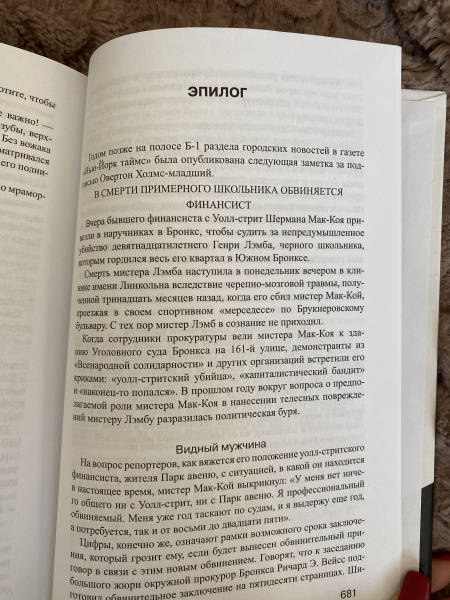 ОписаниеНью-Йорк образца 1980-х годов: политиканство, расизм, социальное неравенство, одержимость деньгами и властью... Возможно ли на этом фоне сохранить в себе нравственное начало или герои обречены сгореть в костре собственных амбиций?Роман получил книжную премию "Амбассадор", а в 1990 году по нему был снят фильм.Нью-Йорк образца 1980-х годов: политиканство, расизм, социальное неравенство, одержимость деньгами и властью... Возможно ли на этом фоне сохранить в себе нравственное начало или герои обречены сгореть в костре собственных амбиций?Роман получил книжную премию "Амбассадор", а в 1990 году по нему был снят фильм.