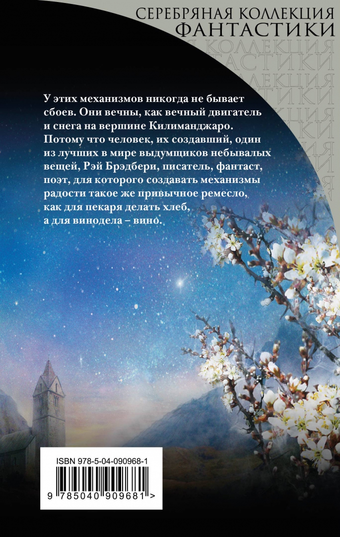 ОписаниеУ этих механизмов никогда не бывает сбоев. Они вечны, как вечный двигатель и снега на вершине Килиманджаро. Потому что человек, их создавший, один из лучших в мире выдумщиков небывалых вещей, Рэй Брэдбери, писатель, фантаст, поэт, для которого создавать механизмы радости такое же привычное ремесло, как для пекаря делать хлеб, а для винодела - вино.У этих механизмов никогда не бывает сбоев. Они вечны, как вечный двигатель и снега на вершине Килиманджаро. Потому что человек, их создавший, один из лучших в мире выдумщиков небывалых вещей, Рэй Брэдбери, писатель, фантаст, поэт, для которого создавать механизмы радости такое же привычное ремесло, как для пекаря делать хлеб, а для винодела - вино.
