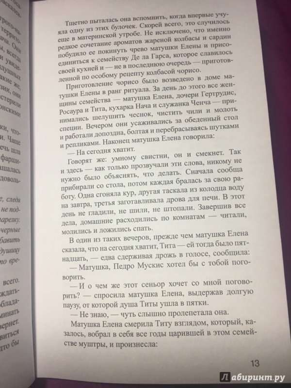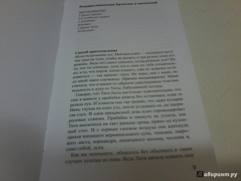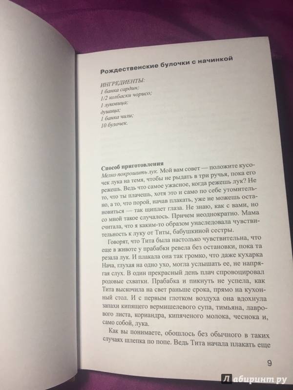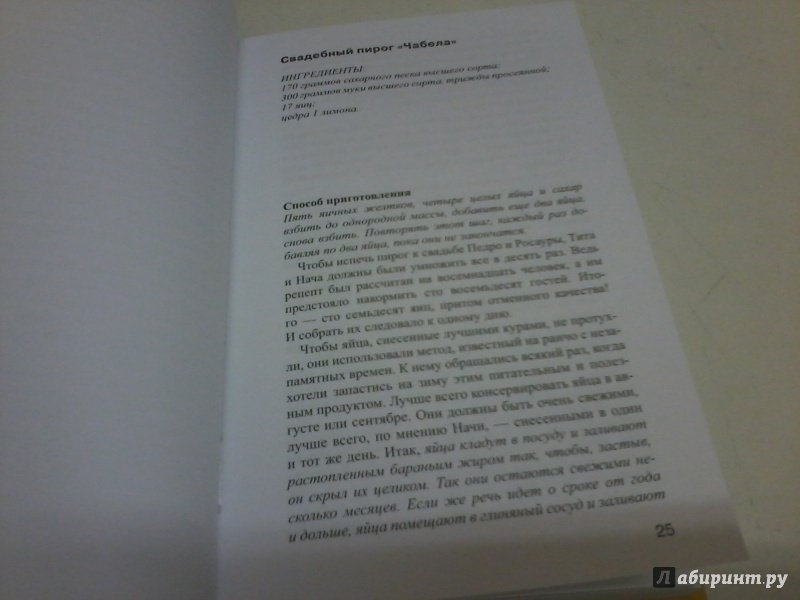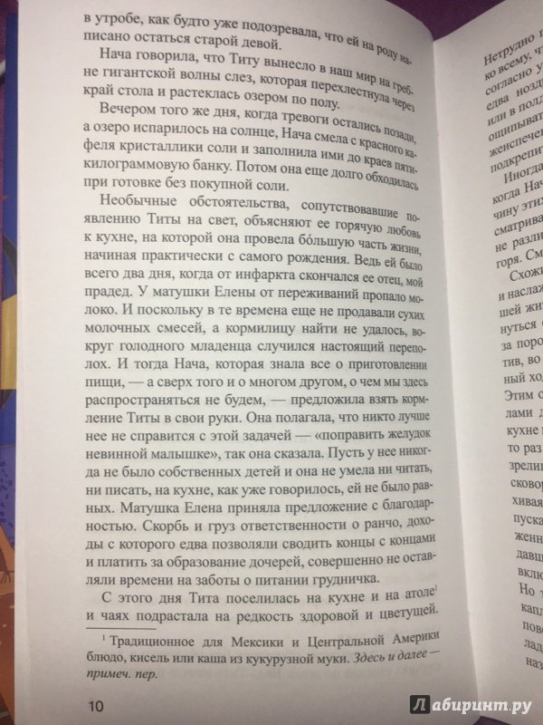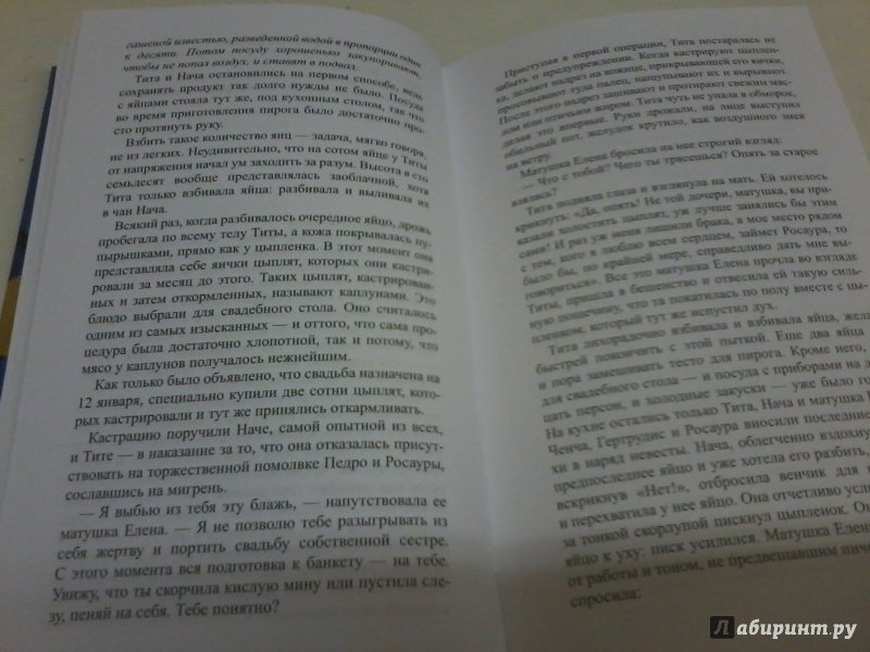ОписаниеИнтригующий любовный сюжет, сочетание мистики и реальности, великолепные рецепты блюд латиноамериканской кухни... Роман мексиканской писательницы Лауры Эскивель был переведен и издан в девяноста восьми странах мира общим тиражом более десяти миллионов экземпляров, а также удостоен престижной литературной награды - премии Американской ассоциации книготорговцев. Это - бестселлер в высшем понимании этого слова.Интригующий любовный сюжет, сочетание мистики и реальности, великолепные рецепты блюд латиноамериканской кухни... Роман мексиканской писательницы Лауры Эскивель был переведен и издан в девяноста восьми странах мира общим тиражом более десяти миллионов экземпляров, а также удостоен престижной литературной награды - премии Американской ассоциации книготорговцев. Это - бестселлер в высшем понимании этого слова.