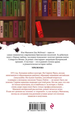 ОписаниеИэн Макьюэн (Ian McEwan) - один из самых знаменитых современных британских писателей. За дебютную книгу "Первая любовь, последнее помазание" получил премию имени Сомерсета Моэма. За роман "Амстердам" награжден Букеровской премией."Сластена" - это в равной степени драма и романтическая история любви. 1972 год. Холодная война в разгаре. На Сирину Фрум, весьма начитанную и образованную девушку, обращают внимание английские спецслужбы. Им нужен человек, способный втереться в доверие к молодому писателю Томасу Хейли - он может быть им полезен. Сирина идеально подходит для этой роли. Кто же знал, что она не только начитанна, но и влюбчива и ее интерес к Хейли очень скоро перестанет быть только профессиональным… Макьюэн интересный рассказчик, роман читается легко. В нем нет деления на "плохих" и "хороших", и, как всегда у Макьюэна, взгляд на ситуацию под разными углами делает его полным нюансов и полутонов.Иэн Макьюэн (Ian McEwan) - один из самых знаменитых современных британских писателей. За дебютную книгу "Первая любовь, последнее помазание" получил премию имени Сомерсета Моэма. За роман "Амстердам" награжден Букеровской премией."Сластена" - это в равной степени драма и романтическая история любви. 1972 год. Холодная война в разгаре. На Сирину Фрум, весьма начитанную и образованную девушку, обращают внимание английские спецслужбы. Им нужен человек, способный втереться в доверие к молодому писателю Томасу Хейли - он может быть им полезен. Сирина идеально подходит для этой роли. Кто же знал, что она не только начитанна, но и влюбчива и ее интерес к Хейли очень скоро перестанет быть только профессиональным… Макьюэн интересный рассказчик, роман читается легко. В нем нет деления на "плохих" и "хороших", и, как всегда у Макьюэна, взгляд на ситуацию под разными углами делает его полным нюансов и полутонов.