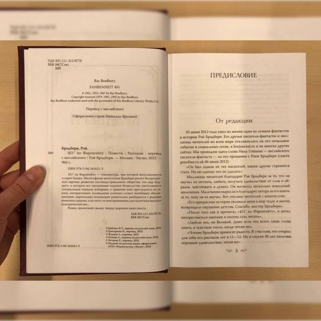 ОписаниеФилософская антиутопия Рэя Брэдбери рисует беспросветную картину развития постиндустриального общества. Роман, принесший своему творцу мировую известность.Сенсационным было заявление Брэдбери в 2007 году, что "451° по Фаренгейту" понимают неправильно. Эта книга не о правительственной цензуре, это история о том, как телевидение уничтожает интерес к чтению книг.В начале 1950-х большинство американцев в глаза не видело телевизора, однако Брэдбери предсказал наступление новой эры свободы, достатка и развлечений, когда желание быть счастливым, помноженное на политкорректность, приведет к запрету книг. "Цветным не нравится книга "Маленький черный Самбо". Сжечь ее... - Белым неприятна "Хижина дяди Тома". Сжечь и ее тоже. Кто-то написал книгу о том, что курение предрасполагает к раку легких. Табачные фабриканты в панике. Сжечь эту книгу. ...книга - это заряженное ружье в доме соседа. Сжечь ее! Разрядить ружье!" Новая серия шедевров мировой литературы в изысканном переплете из экокожи с тиснением золотой и серебряной фольгой. Оформление книг выполнено в элегантном винном оттенке, обложки украшены рельефным узорчатым тиснением.СвернутьФилософская антиутопия Рэя Брэдбери рисует беспросветную картину развития постиндустриального общества. Роман, принесший своему творцу мировую известность.Сенсационным было заявление Брэдбери в 2007 году, что "451° по Фаренгейту" понимают неправильно. Эта книга не о правительственной цензуре, это история о том, как телевидение уничтожает интерес к чтению книг.В начале 1950-х большинство американцев в глаза не видело телевизора, однако Брэдбери предсказал наступление новой эры свободы, достатка и развлечений, когда желание быть счастливым, помноженное на политкорректность, приведет к запрету книг. "Цветным не нравится книга "Маленький черный Самбо". Сжечь ее... - Белым неприятна "Хижина дяди Тома". Сжечь и ее тоже. Кто-то написал книгу о том, что курение предрасполагает к раку легких. Табачные фабриканты в панике. Сжечь эту книгу. ...книга - это заряженное ружье в доме соседа. Сжечь ее! Разрядить ружье!" Новая серия шедевров мировой литературы в изысканном переплете из экокожи с тиснением золотой и серебряной фольгой. Оформление книг выполнено в элегантном винном оттенке, обложки украшены рельефным узорчатым тиснением.СвернутьСвернуть
