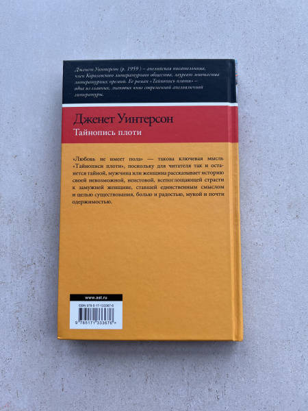 ОписаниеДженет Уинтерсон (р. в 1959 году) - английская писательница, член Королевского литературного общества, лауреат множества литературных премий. Ее роман "Тайнопись плоти" - одна из главных, знаковых книг современной англоязычной литературы. "Любовь не имеет пола" - такова ключевая мысль "Тайнописи плоти", поскольку для читателя так и останется тайной, мужчина или женщина рассказывает историю своей невозможной, неистовой, всепоглощающей страсти к замужней женщине, ставшей единственным смыслом и целью существования, болью и радостью, мукой и почти одержимостью.Дженет Уинтерсон (р. в 1959 году) - английская писательница, член Королевского литературного общества, лауреат множества литературных премий. Ее роман "Тайнопись плоти" - одна из главных, знаковых книг современной англоязычной литературы. "Любовь не имеет пола" - такова ключевая мысль "Тайнописи плоти", поскольку для читателя так и останется тайной, мужчина или женщина рассказывает историю своей невозможной, неистовой, всепоглощающей страсти к замужней женщине, ставшей единственным смыслом и целью существования, болью и радостью, мукой и почти одержимостью.