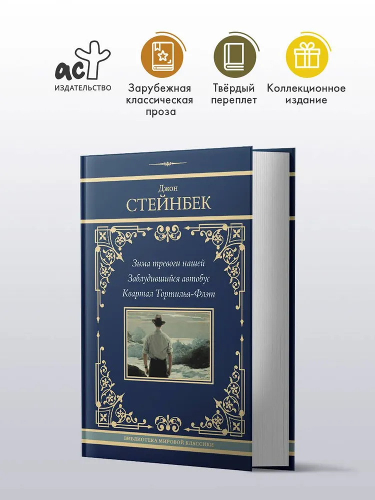 ОписаниеАннотация к книге "Зима тревоги нашей. Заблудившийся автобус. Квартал Тортилья-Флэт" Стейнбек Д.:Джон Стейнбек (1902–1968) – американский писатель, лауреат Нобелевской и Пулитцеровской премий, автор всемирно известных романов "Гроздья гнева" и "К востоку от Эдема". Произведения Стейнбека пользуются заслуженной славой у читателей и неизменно привлекают внимание кинематографистов – большая часть его романов получила экранное воплощение.В сборник включены романы, представляющие разные периоды творчества писателя: "Зима тревоги нашей", "Заблудившийся автобус" и "Квартал Тортилья-Флэт". Читать дальше…