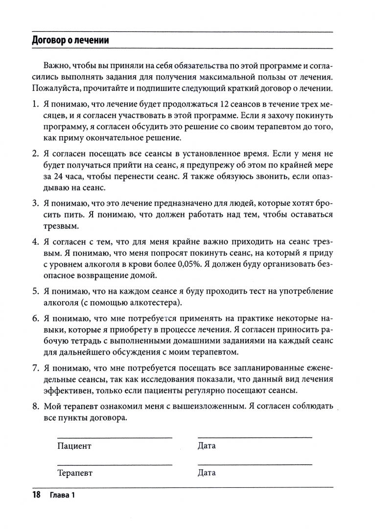 ОписаниеЭФФЕКТИВНЫЕ МЕТОДЫ СОВРЕМЕННОЙ ТЕРАПИИ!Эта книга написана для алкозависимых людей, чтобы помочь справиться с зависимостью, оставаться трезвыми и удерживать достигнутый результат. Рабочая тетрадь поможет всем, кому сложно справляться с тягой к выпивке и преодолевать трудности без алкоголя, однако она не заменит профессионального психотерапевта. Если после изучения рабочей тетради по когнитивно-поведенческой терапии вы обнаружите, что все еще испытываете трудности, обратитесь к специалисту, который поможет применить эти навыки.Книга будет также полезна для любого терапевта, работающего с алкозависимыми людьми и желающего помочь им выработать когнитивно-поведенческие навыки.Употребление алкоголя может негативно влиять на повседневную жизнь человека, его здоровье и отношения с другими людьми. Тем, кому пришлось столкнуться с этой проблемой, следует изучить данную рабочую тетрадь, чтобы с ней справиться. Предложенные здесь методики позволяют разработать план воздержания, определить триггеры к выпивке, составить план действий в ситуациях повышенного риска, научиться справляться с позывами к выпивке, а также обрести мотивацию быть трезвым. Эта рабочая тетрадь поможет находить позитивные моменты в воздержании. Читатель научиться справляться с негативными эмоциями и мыслями, а также с тревогой и депрессией, связанными с употреблением алкоголя, найдет социальную поддержку, станет напористым, сможет контролировать свой гнев и решать проблемы без выпивки.В ЭТОЙ КНИГЕ:Теоретические данные - основная информация, которая поможет понять суть проблемы, определить ее принципы и найти варианты решенияЛисты для самоконтроля - помогут понять мотивы и определить закономерности в употреблении алкоголя, а также выявить триггеры и ситуации с повышенным рискомПрактические упражнения - научат избегать ситуаций с повышенным риском и правильно из них выходить, помогут составить план сохранения достигнутых результатов и подготовиться к срывам и рецидивамДомашние задания - помогут активно участвовать в терапии, усваивать информацию, выполнять упражнения, быть вовлеченным и получать мотивациюСвернутьЭФФЕКТИВНЫЕ МЕТОДЫ СОВРЕМЕННОЙ ТЕРАПИИ!Эта книга написана для алкозависимых людей, чтобы помочь справиться с зависимостью, оставаться трезвыми и удерживать достигнутый результат. Рабочая тетрадь поможет всем, кому сложно справляться с тягой к выпивке и преодолевать трудности без алкоголя, однако она не заменит профессионального психотерапевта. Если после изучения рабочей тетради по когнитивно-поведенческой терапии вы обнаружите, что все еще испытываете трудности, обратитесь к специалисту, который поможет применить эти навыки.Книга будет также полезна для любого терапевта, работающего с алкозависимыми людьми и желающего помочь им выработать когнитивно-поведенческие навыки.Употребление алкоголя может негативно влиять на повседневную жизнь человека, его здоровье и отношения с другими людьми. Тем, кому пришлось столкнуться с этой проблемой, следует изучить данную рабочую тетрадь, чтобы с ней справиться. Предложенные здесь методики позволяют разработать план воздержания, определить триггеры к выпивке, составить план действий в ситуациях повышенного риска, научиться справляться с позывами к выпивке, а также обре