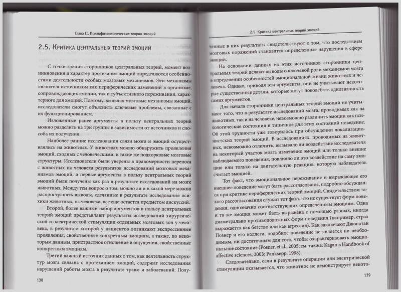 ОписаниеВ учебном пособии представлено подробное описание наиболее известных теорий и исследований эмоций. В каждой главе прослеживается развитие идей от их истоков до наиболее современных подходов к исследованию эмоций. Такой порядок изложения делает понятным широкому кругу читателей, не знакомых с областью, содержание даже наиболее современных и сложных научных представлений об эмоциях. Систематическое изложение классических представлений, а также их теоретической и эмпирической критики научных преемников делает книгу полезной студентам при изучении разделов курса "Общей психологии", посвященных основным направлениям представлений об эмоциях, психических состояниях, мотивации, сознания и личности. Значительную часть пособия занимают современные и в то же время ставшие классикой в западной литературе исследования эмоций, которые пока еще не представлены или лишь упоминаются в разрозненных русскоязычных источниках. Их изложение заинтересует бакалавров и магистров изучающих эмоции человека в рамках более специальных курсов, таких как "Психология развития и возрастная психология", раздел "Психология личностных отношений" в курсе "Социальной психологии", "Психология личности", "Клиническая психология", а также профессионалов в области психологии и смежных наук.СвернутьВ учебном пособии представлено подробное описание наиболее известных теорий и исследований эмоций. В каждой главе прослеживается развитие идей от их истоков до наиболее современных подходов к исследованию эмоций. Такой порядок изложения делает понятным широкому кругу читателей, не знакомых с областью, содержание даже наиболее современных и сложных научных представлений об эмоциях. Систематическое изложение классических представлений, а также их теоретической и эмпирической критики научных преемников делает книгу полезной студентам при изучении разделов курса "Общей психологии", посвященных основным направлениям представлений об эмоциях, психических состояниях, мотивации, сознания и личности. Значительную часть пособия занимают современные и в то же время ставшие классикой в западной литературе исследования эмоций, которые пока еще не представлены или лишь упоминаются в разрозненных русскоязычных источниках. Их изложение заинтересует бакалавров и магистров изучающих эмоции человека в рамках более специальных курсов, таких как "Психология развития и возрастная психология", раздел "Психология личностных отношений" в курсе "Социальной психологии", "Психология личности", "Клиническая психология", а также профессионалов в области психологии и смежных наук.СвернутьСвернуть