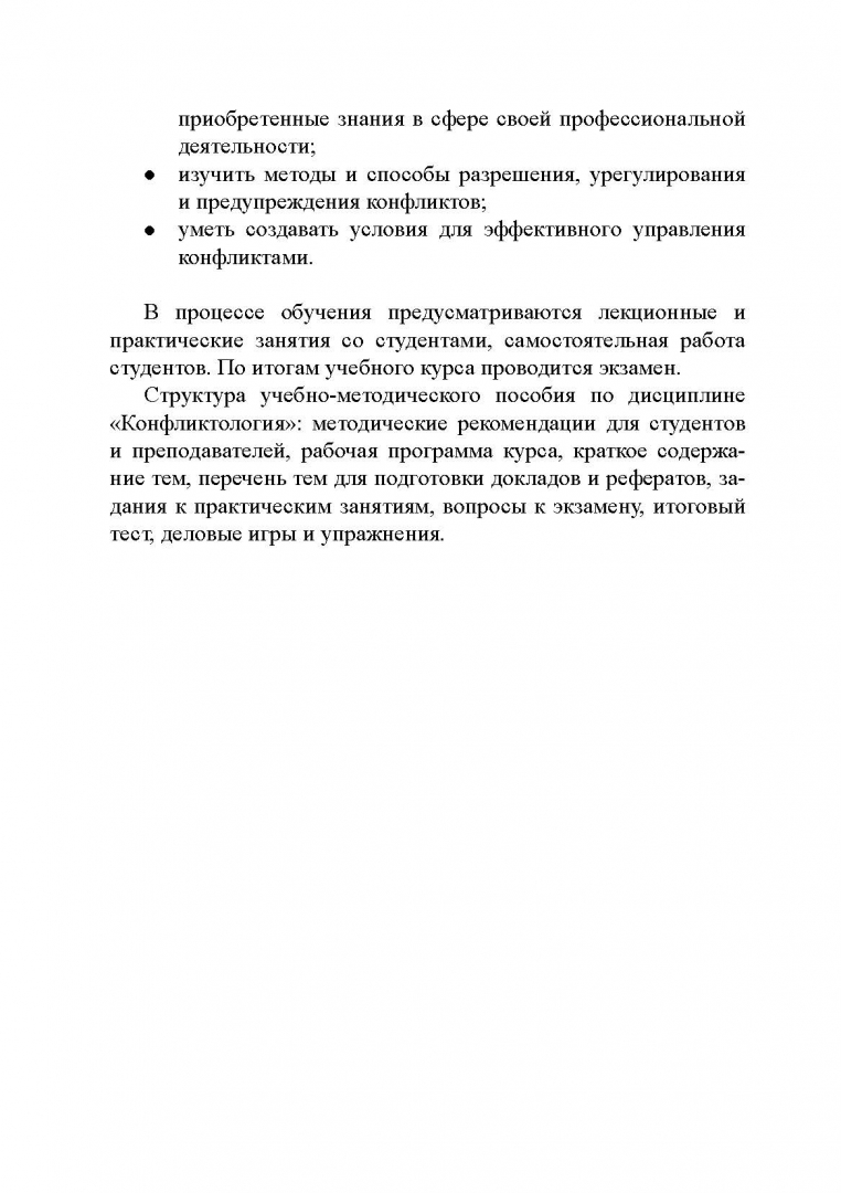 ОписаниеУчебно-методическое пособие включает материал для изучения дисциплины "Конфликтология" и проведения лекционных и практических занятий: программу курса, краткое содержание каждой темы курса, темы докладов и рефератов, практические задания, итоговый тест, игры и упражнения.Пособие может быть использовано преподавателями в процессе подготовки к занятиям и студентами в процессе их профессиональной подготовки.Учебно-методическое пособие включает материал для изучения дисциплины "Конфликтология" и проведения лекционных и практических занятий: программу курса, краткое содержание каждой темы курса, темы докладов и рефератов, практические задания, итоговый тест, игры и упражнения.Пособие может быть использовано преподавателями в процессе подготовки к занятиям и студентами в процессе их профессиональной подготовки.