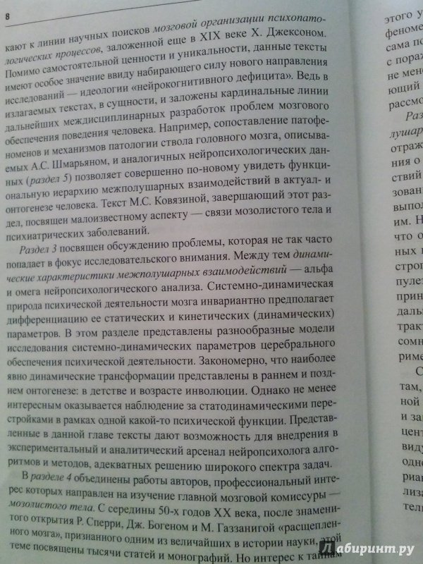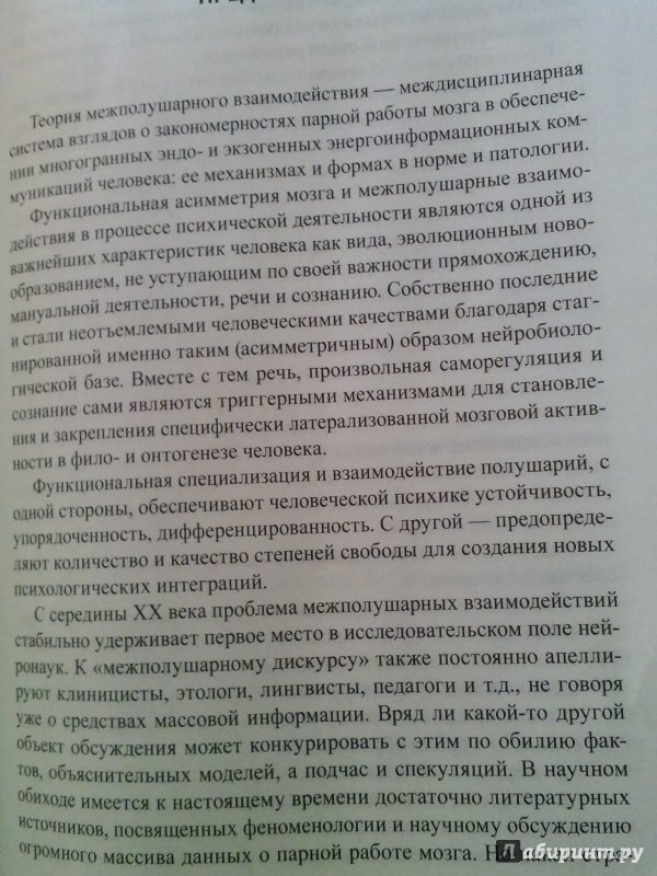 ОписаниеНет сегодня направления в науках о поведении человека, которое не обращалось бы к анализу межполушарного обеспечения психических функций. Именно поэтому назрела насущная необходимость в обобщении накопленного опыта; прежде всего - в исследовании межполушарного взаимодействия. Содержание данной хрестоматии представляет собой обзор основных направлений данной проблематики. В книгу включены работы как недавно опубликованные, так и ставшие раритетами, поскольку они давно не переиздавались или были опубликованы в специальных научных сборниках.Хрестоматия предназначена для студентов психологических, педагогических и медицинских вузов, нейропсихологов, клинических психологов. Она представляет также интерес для широкого круга специалистов, работающих в проблемном поле межполушарной организации психологических систем человека в норме и патологии.2-е издание, исправленное и дополненное.Нет сегодня направления в науках о поведении человека, которое не обращалось бы к анализу межполушарного обеспечения психических функций. Именно поэтому назрела насущная необходимость в обобщении накопленного опыта; прежде всего - в исследовании межполушарного взаимодействия. Содержание данной хрестоматии представляет собой обзор основных направлений данной проблематики. В книгу включены работы как недавно опубликованные, так и ставшие раритетами, поскольку они давно не переиздавались или были опубликованы в специальных научных сборниках.Хрестоматия предназначена для студентов психологических, педагогических и медицинских вузов, нейропсихологов, клинических психологов. Она представляет также интерес для широкого круга специалистов, работающих в проблемном поле межполушарной организации психологических систем человека в норме и патологии.2-е издание, исправленное и дополненное.