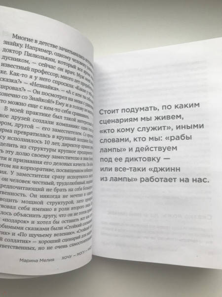 ОписаниеДелать то, что хочется, и быть счастливым?Так ли это просто, как звучит?Марина Мелия – профессор психологии и коуч-консультант первых лиц российского бизнеса. Уникальный метод ее работы заключается в том, что она помогает человеку раскрыть и усилить свою силу, развить свои достоинства, а не искоренять недостатки.Проверенный и отработанный за более чем 40 лет практики, метод изложен на страницах книги так, что им можно пользоваться без помощи психолога.Получилась книга, с которой можно работать последовательно – для глобальных перемен в карьере и жизни, а можно обращаться по мере необходимости, чтобы найти правильное решение, взять сложившуюся ситуацию под контроль и стать сильнее.Книга поможет:• провести самоанализ по схеме «хочу – могу – надо» и осознать свои истинные желания и реальные возможности;• понять свои преимущества и как на них опираться в сложных жизненных ситуациях;• распознать свой жизненный сценарий и механизм его изменения;• определить свою цель и алгоритм ее достижений;• найти свой уникальный путь к счастью.СвернутьДелать то, что хочется, и быть счастливым?Так ли это просто, как звучит?Марина Мелия – профессор психологии и коуч-консультант первых лиц российского бизнеса. Уникальный метод ее работы заключается в том, что она помогает человеку раскрыть и усилить свою силу, развить свои достоинства, а не искоренять недостатки.Проверенный и отработанный за более чем 40 лет практики, метод изложен на страницах книги так, что им можно пользоваться без помощи психолога.Получилась книга, с которой можно работать последовательно – для глобальных перемен в карьере и жизни, а можно обращаться по мере необходимости, чтобы найти правильное решение, взять сложившуюся ситуацию под контроль и стать сильнее.Книга поможет:• провести самоанализ по схеме «хочу – могу – надо» и осознать свои истинные желания и реальные возможности;• понять свои преимущества и как на них опираться в сложных жизненных ситуациях;• распознать свой жизненный сценарий и механизм его изменения;• определить свою цель и алгоритм ее достижений;• найти свой уникальный путь к счастью.СвернутьСвернуть