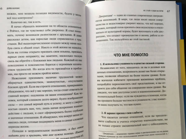 СвернутьДейв Холлис построил головокружительную карьеру - должность генерального директора медиа-стартапа, должность президента по дистрибуции киностудии The Walt Disney Company, также работа в сфере рекламы, исследований и технологий в секторе развлечений. Дейв - отец восьмерых детей, четверо из них приемные, коллекционер спортивных памятных вещей, заядлый бегун и гордый владелец Ford Bronco 1969 года выпуска.В какой-то момент все пошло не по плану: борьба с алкоголизмом, проблемы на работе и неуверенность в том, что он хороший отец, опустили Дейва на самое дно. Тогда он встал перед выбором: выходить из зоны комфорта, чтобы стать лучше, чем когда-либо, или ничего не делать и остаться тем, кто он есть сейчас.В книге "Не стой у себя на пути" автор раскрывает темы, которых он когда-то боялся сам:o самоанализ и личностный рост;o отказ от ложных представлений о себе;o ясность видения собственного пути;o стереотипное мышление.Книга расскажет об инструментах, которые помогли автору изменить свою жизнь и которые помогут изменить вашу жизнь в лучшую сторону.Будь тверже и уверенне на пути непредвиденных обстоятельств. И помни - ты не один!