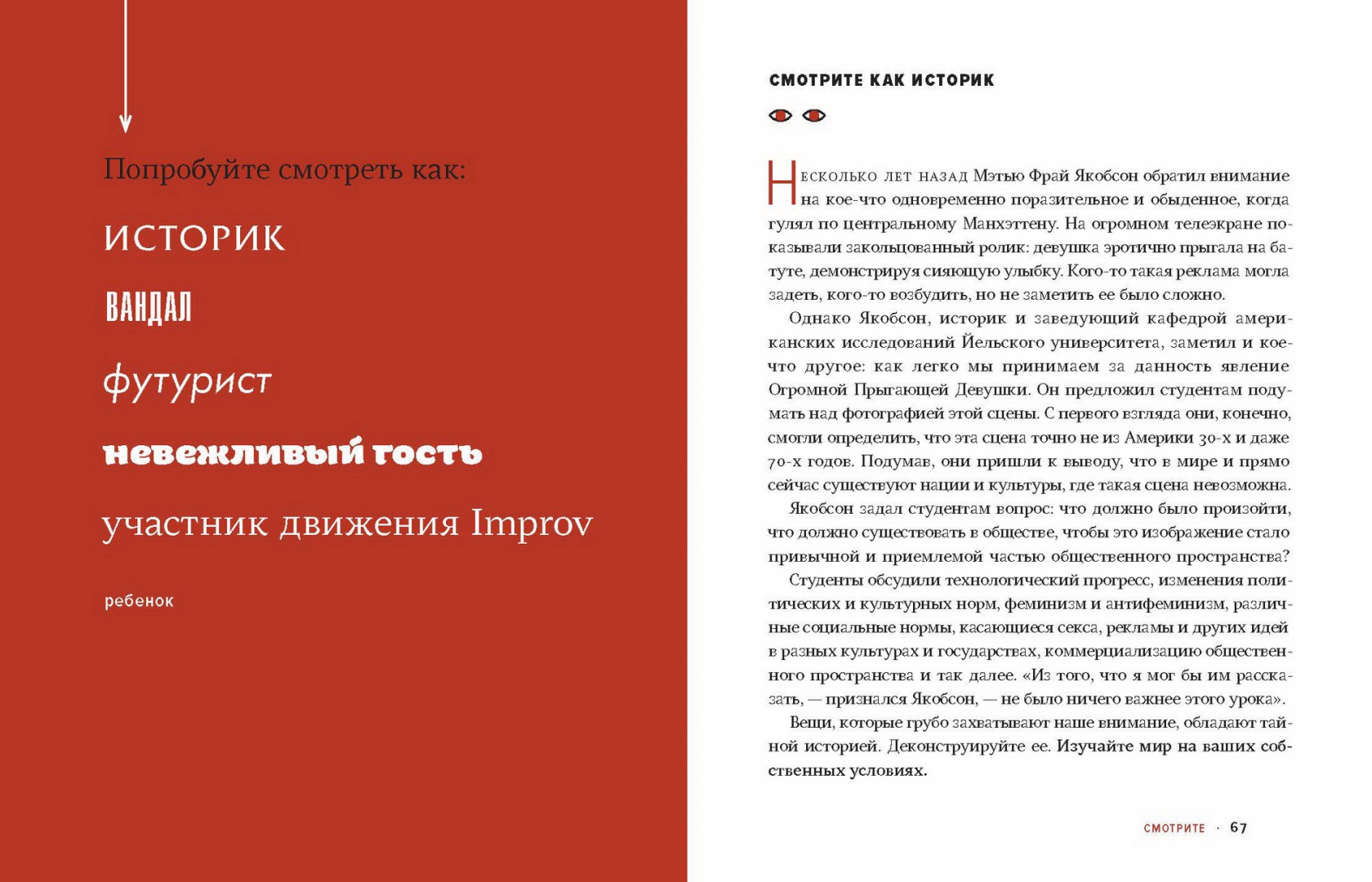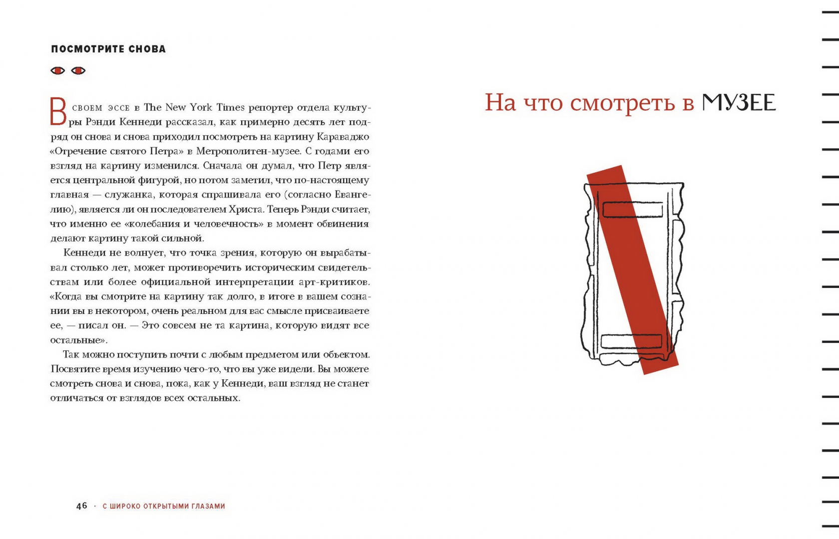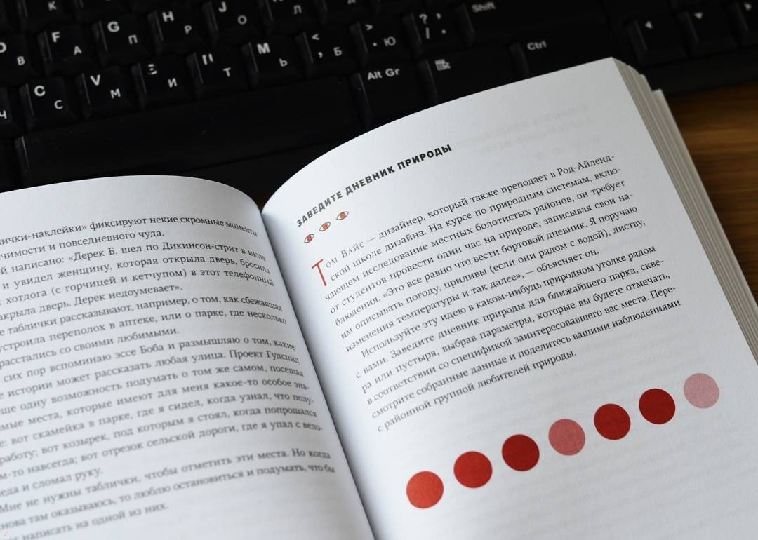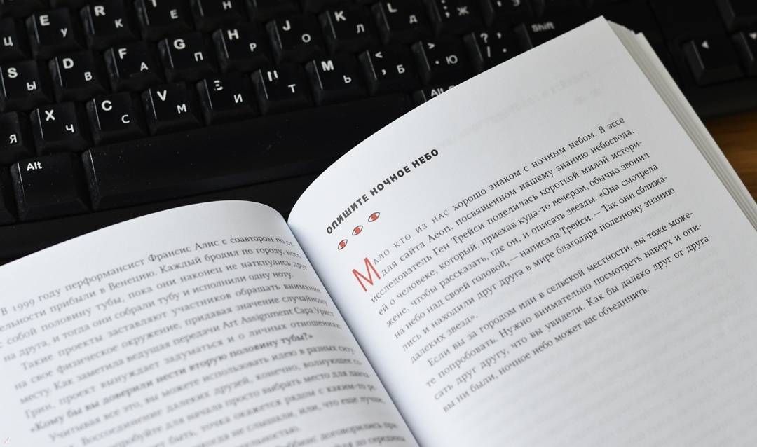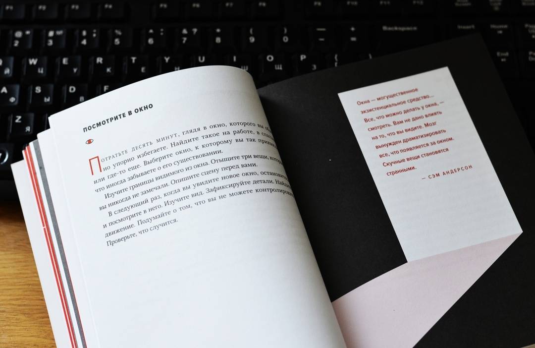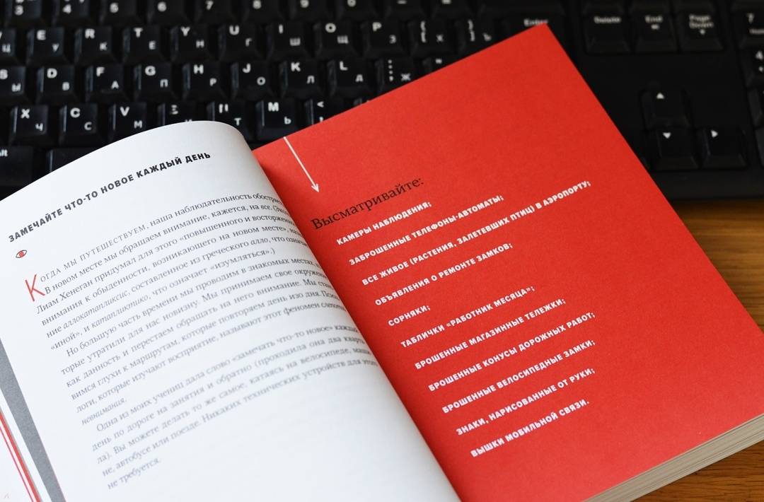 ОписаниеПростые и увлекательные упражнения для развития творческого мышления.В эпоху информационного шума наша жизнь привязана к телефонам, электронной почте и социальным сетям. Среди всех этих отвлекающих факторов мы часто теряем способность ощущать и присутствовать в настоящем: думать, видеть и слушать.Откройте для себя упражнения Роба Уокера. Эта великолепно оформленная книга вдохновит на творчество и поможет увидеть мир по-новому. Вы научитесь яснее мыслить, лучше слушать, продуктивнее работать. Вы заново обретете интерес к жизни и начнете замечать то, что действительно важно.От автораФраза «учиться обращать внимание» поразила меня, когда я прочитал рассказ Беннинга в книге «Нарисуй с закрытыми глазами» с творческими заданиями для студентов художественных вузов. Эта идея меня так и не оставила.В это время я составлял план пятинедельного курса, который до сих пор провожу раз в год в Нью-Йоркской школе визуального искусства. Каждый год в какой-то момент я прошу моих студентов «попробовать обращать внимание». В этом и заключается все задание. И каждый работает над моим намеренно непонятным поручением по-своему.Успешные учителя, врачи, юристы, предприниматели и клерки — все они выхватывают из повседневности незаметные подсказки и детали, которые проходят мимо всех остальных. Вот почему на самом деле такие компании, как Google и Goldman Sachs, ввели программы, разработанные специально для того, чтобы помочь работникам бороться с нашей культурой помех и восстановить их концентрацию и креативность — как правило, под вывеской медитации или обучения осознанности. Умение обращать внимание, привычка замечать культивируют оригинальный взгляд на мир, самостоятельную точку зрения. Отчасти именно этому я пытаюсь научить моих студентов и именно поэтому пытаюсь практиковать наблюдательность сам.Для кого эта книгаДля всех, кто хочет жить более осознанной, интересной и творческой жизнью.Для всех представителей креативной индустрии.СвернутьПростые и увлекательные упражнения для развития творческого мышления.В эпоху информационного шума наша жизнь привязана к телефонам, электронной почте и социальным сетям. Среди всех этих отвлекающих факторов мы часто теряем способность ощущать и присутствовать в настоящем: думать, видеть и слушать.Откройте для себя упражнения Роба Уокера. Эта великолепно оформленная книга вдохновит на творчество и поможет увидеть мир по-новому. Вы научитесь яснее мыслить, лучше слушать, продуктивнее работать. Вы заново обретете интерес к жизни и начнете замечать то, что действительно важно.От автораФраза «учиться обращать внимание» поразила меня, когда я прочитал рассказ Беннинга в книге «Нарисуй с закрытыми глазами» с творческими заданиями для студентов художественных вузов. Эта идея меня так и не оставила.В это время я составлял план пятинедельного курса, который до сих пор провожу раз в год в Нью-Йоркской школе визуального искусства. Каждый год в какой-то момент я прошу моих студентов «попробовать обращать внимание». В этом и заключается все задание. И каждый работает над моим намеренно непонятным поручением по-своему.Успешные учителя, врачи, юристы, предприниматели и клерки — все они выхватывают из повседневности незаметные подсказки и детали, которые проходят мимо всех остальных. Вот почему на само