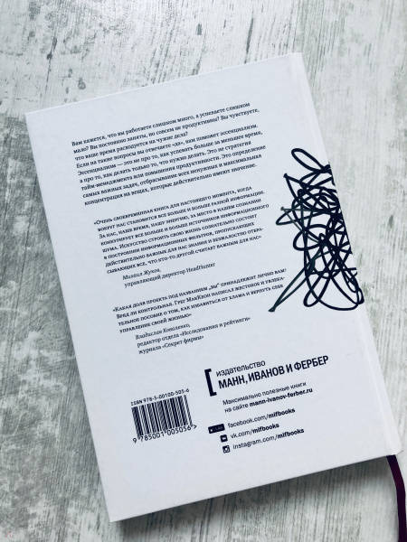 ОписаниеКнига поможет расставить приоритеты в жизни и расскажет, как делать меньше, а добиваться большего.Вам кажется, что вы работаете слишком долго, а успеваете слишком мало? Вы постоянно заняты, но совсем не продуктивны? Вы чувствуете, что ваше время расходуется на чужие дела?Если на такие вопросы вы отвечаете "да", вам поможет эссенциализм.Эссенциализм - это не про то, как успевать больше за меньшее время, а про то, как делать только то, что нужно делать. Это не стратегия тайм-менеджмента или повышения продуктивности. Это определение самых важных задач, отбрасывание всех ненужных и максимальная концентрация на вещах, которые действительно имеют значение.Ваши время и энергия бесценны, их нельзя тратить на те вещи и тех людей, которые на самом деле не важны для вас. Вы и только вы должны определять, что стоит ваших ограниченных ресурсов.Эссенциализм - это новый подход, который позволит вам делать меньше, но лучше - во всех сферах вашей жизни.Для кого эта книгаЭто книга для всех, кому не хватает времени на самое важное.8-е издание, дополненное.СвернутьКнига поможет расставить приоритеты в жизни и расскажет, как делать меньше, а добиваться большего.Вам кажется, что вы работаете слишком долго, а успеваете слишком мало? Вы постоянно заняты, но совсем не продуктивны? Вы чувствуете, что ваше время расходуется на чужие дела?Если на такие вопросы вы отвечаете "да", вам поможет эссенциализм.Эссенциализм - это не про то, как успевать больше за меньшее время, а про то, как делать только то, что нужно делать. Это не стратегия тайм-менеджмента или повышения продуктивности. Это определение самых важных задач, отбрасывание всех ненужных и максимальная концентрация на вещах, которые действительно имеют значение.Ваши время и энергия бесценны, их нельзя тратить на те вещи и тех людей, которые на самом деле не важны для вас. Вы и только вы должны определять, что стоит ваших ограниченных ресурсов.Эссенциализм - это новый подход, который позволит вам делать меньше, но лучше - во всех сферах вашей жизни.Для кого эта книгаЭто книга для всех, кому не хватает времени на самое важное.8-е издание, дополненное.СвернутьСвернуть