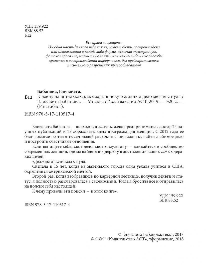 ---Елизавета Бабанова: К дзену на шпильках. Как создать новую жизнь и дело мечты с нуляЭЗОТЕРИКА. ПАРАПСИХОЛОГИЯ. ТАЙНЫ.БИОГРАФИИ и МЕМУАРЫИСТОРИЯ и ПОЛИТИКАФЭНТЕЗИ и ФАНТАСТИКАМЕДИЦИНА и ПСИХОЛОГИЯ ЭКОНОМИКА. БИЗНЕС. МАРКЕТИНГПУТЕШЕСТВИЕ и ДОСУГКНИГИ НА ДРУГИХ ЯЗЫКАХКНИГИ ДЛЯ ДЕТЕЙУЧЕБНАЯ, МЕТОДИЧЕСКАЯ ЛИТЕРАТУРА и СЛОВАРИТЕХНИКА и НАУКАХУДОЖЕСТВЕННАЯ ЛИТЕРАТУРАРЕЛИГИЯ и ФИЛОСОФИЯПЕРИОДИЧЕСКИЕ ИЗДАНИЯМЕДИЦИНА и ПСИХОЛОГИЯНАШ ИЗРАИЛЬ