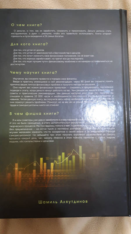 ОписаниеУ вас проблемы с деньгами? Они не приходят к вам? Или они уходят так же быстро, как и приходят?Вас в очередной раз обманул мошенник или кинул на деньги партнер?Вы ссоритесь с мужем из-за нехватки денег?Вы снова дали в долг, а теперь жалеете об этом и не можете спокойно спать?Эта книга может стать для вас мудрым и строгим наставником!Если сегодня у вас уже есть $1000 неприкасаемых сбережений, то в течение 10 лет можно превратить их в сбалансированный актив на $1 000 000, приносящий вам ежемесячно $3300. И дорожной картой - очень конкретной и проверенной жизнью - явится для вас на этом пути данная книга.Предупреждаю, теория сама по себе, даже самая лучшая, не изменит ваше финансовое положение, но может внести серьезные коррективы в ваше видение мира, его анализ. Книга - инструкция к действию с настроем на результат. 365 дней, из года в год, строгого практикования рекомендаций из этой книги с ее постоянным перечитыванием - и вы за 10 лет приумножите свое материальное состояние как минимум в 100 раз!Автор и соавторы давно заработали свой первый миллион и продолжают восхождение к финансовым вершинам. Им интересна жизнь, и они поделились лучшим из своего многолетнего опыта.В книге также есть глава о принципах исламского финансирования и ведения бизнеса."Шамиль Аляутдинов - богослов-новатор, который стремится приблизить религию и ее каноны к современному человеку, сделать Ислам полезным для самосовершенствования и самореализации".Книга для тех, кто не боится перемен, но ищет лучшие пути и инструменты.СвернутьУ вас проблемы с деньгами? Они не приходят к вам? Или они уходят так же быстро, как и приходят?Вас в очередной раз обманул мошенник или кинул на деньги партнер?Вы ссоритесь с мужем из-за нехватки денег?Вы снова дали в долг, а теперь жалеете об этом и не можете спокойно спать?Эта книга может стать для вас мудрым и строгим наставником!Если сегодня у вас уже есть $1000 неприкасаемых сбережений, то в течение 10 лет можно превратить их в сбалансированный актив на $1 000 000, приносящий вам ежемесячно $3300. И дорожной картой - очень конкретной и проверенной жизнью - явится для вас на этом пути данная книга.Предупреждаю, теория сама по себе, даже самая лучшая, не изменит ваше финансовое положение, но может внести серьезные коррективы в ваше видение мира, его анализ. Книга - инструкция к действию с настроем на результат. 365 дней, из года в год, строгого практикования рекомендаций из этой книги с ее постоянным перечитыванием - и вы за 10 лет приумножите свое материальное состояние как минимум в 100 раз!Автор и соавторы давно заработали свой первый миллион и продолжают восхождение к финансовым вершинам. Им интересна жизнь, и они поделились лучшим из своего многолетнего опыта.В книге также есть глава о принципах исламского финансирования и ведения бизнеса."Шамиль Аляутдинов - богослов-новатор, который стремится приблизить религию и ее каноны к современному человеку, сделать Ислам полезным для самосовершенствования и самореализации".Книга для тех, кто не боится перемен, но ищет лучшие пути и инструменты.СвернутьСвернуть