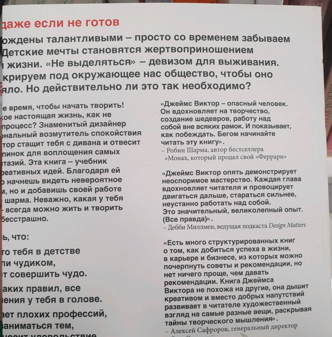 проще, чем давать рекомендации. Книга Джеймса Виктора не похожа на другие, она дышит креативом и вместо добрых напутствий развивает в читателе
