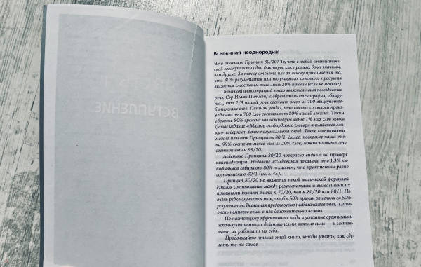 Описание80 % результатов проистекает из 20 % причин. За 20% времени мы успеваем сделать 80% дел. 20% людей владеют 80% капитала. 20% сотрудников, товаров и услуг приносят компании 80% прибыли. Это золотое правило, которое, осознанно или нет, используют все богатые и успешные люди – и становятся еще богаче и успешнее. За 24 года с момента первой публикации книга "Принцип 80/20" стала классикой деловой литературы и мировым бестселлером. Ее автор, успешный бизнесмен Ричард Кох, рассказывает о том, как достичь большего – с намного меньшими затратами усилий, времени и ресурсов. Надо уметь сконцентрироваться на самых важных 20 % вашей жизни. Поступая так, вы будете управлять событиями, а не наоборот – и получать во много раз более позитивные результаты, чем раньше.Дополненное издание.80 % результатов проистекает из 20 % причин. За 20% времени мы успеваем сделать 80% дел. 20% людей владеют 80% капитала. 20% сотрудников, товаров и услуг приносят компании 80% прибыли. Это золотое правило, которое, осознанно или нет, используют все богатые и успешные люди – и становятся еще богаче и успешнее. За 24 года с момента первой публикации книга "Принцип 80/20" стала классикой деловой литературы и мировым бестселлером. Ее автор, успешный бизнесмен Ричард Кох, рассказывает о том, как достичь большего – с намного меньшими затратами усилий, времени и ресурсов. Надо уметь сконцентрироваться на самых важных 20 % вашей жизни. Поступая так, вы будете управлять событиями, а не наоборот – и получать во много раз более позитивные результаты, чем раньше.Дополненное издание.
