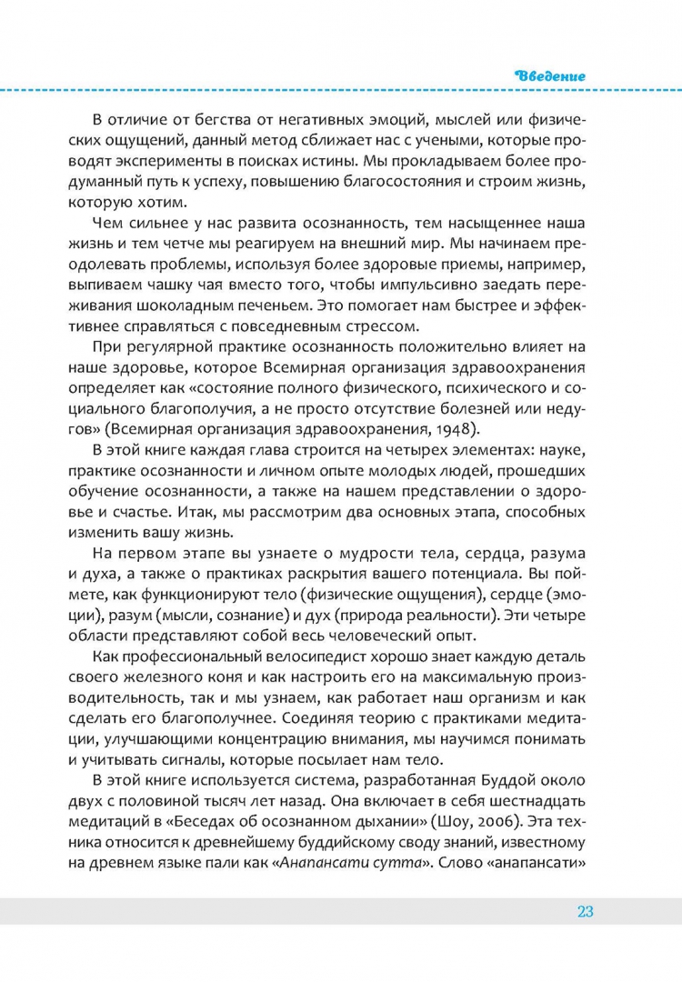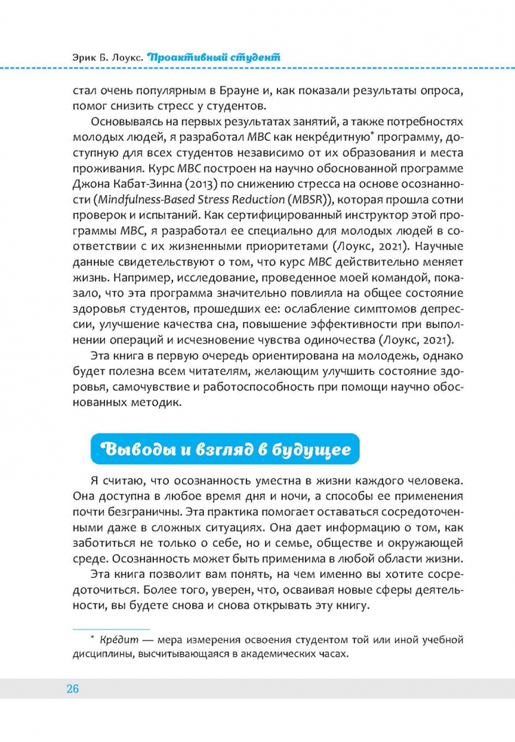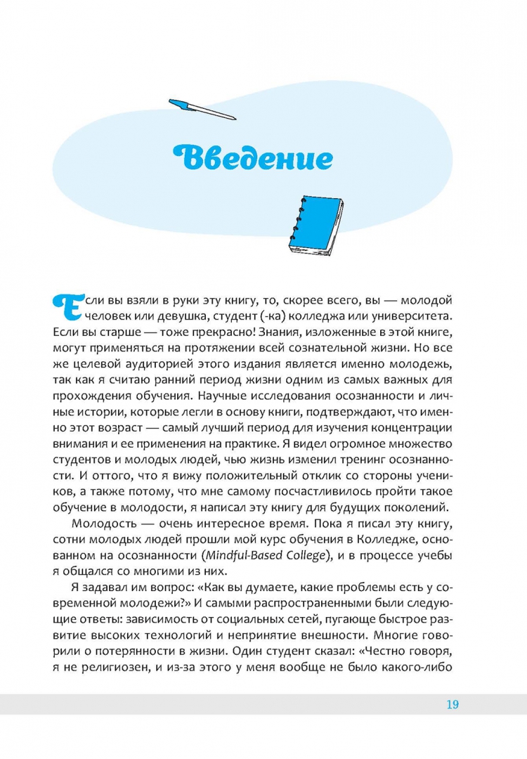 ОписаниеКак часто вы ловили себя на том, что перечитываете одно и то же предложение, не понимая его сути? Или осознавали, что, задумавшись, полностью прослушали, что говорит ваш собеседник? А вместо учебы или рабочих задач листали соцсети или смешные видео с котиками?Не переживайте, вы не одиноки, нам тоже это знакомо. К сожалению, рассеянное внимание - одна из печально известных "визитных карточек" нашего времени.Эрик Б. Лоукс, преподаватель Университета Брауна, предлагает читателям всех возрастов остановиться и задуматься о настоящем моменте. Бездумное времяпрепровождение не только вредит нашей продуктивности, но и лишает жизнь красок. Вместо того чтобы наслаждаться вкусом пищи и приятной беседой за трапезой, мы параллельно читаем новости, смотрим видео или работаем. И это только один пример из тысячи подобных ситуаций. Эрик Б. Лоукс уверен, что осознанность может изменить вашу жизнь. Этот навык пригодится не только ученикам и студентам, но и взрослым всех возрастов.Автор книги предлагает читателю попробовать техники для концентрации внимания, которые помогут оставаться вовлеченными в каждый момент.После прохождения курса, изложенного в книге, вы сможете:- сосредоточиваться на выполнении рабочих и учебных задач;- ставить цели и добиваться успеха;- получать удовольствие от общения с другими людьми;- радоваться каждому дню.Эрик Б. Лоукс, кандидат наук, профессор, исследователь и пионер в области изучения связи осознанности и здоровья. Он - директор Центра осознанности при Университете Брауна - одного из ведущих центров осознанности в мире. Помимо этого, Эрик Б. Лоукс ученый, который проводит обстоятельные, методологически выверенные исследования в области осознанности и ее влияния на здоровье и благополучие.Будучи экспертом в исследованиях, связанных со старением, он адаптирует программы осознанности для конкретных возрастных групп. Эрик Б. Лоукс получал исследовательские гранты от национальных институтов здравоохранения для оценки эффективности программ развития осознанности. На протяжении своей карьеры занимал преподавательские должности в университетах Гарварда, Макгилла и Брауна.СвернутьКак часто вы ловили себя на том, что перечитываете одно и то же предложение, не понимая его сути? Или осознавали, что, задумавшись, полностью прослушали, что говорит ваш собеседник? А вместо учебы или рабочих задач листали соцсети или смешные видео с котиками?Не переживайте, вы не одиноки, нам тоже это знакомо. К сожалению, рассеянное внимание - одна из печально известных "визитных карточек" нашего времени.Эрик Б. Лоукс, преподаватель Университета Брауна, предлагает читателям всех возрастов остановиться и задуматься о настоящем моменте. Бездумное времяпрепровождение не только вредит нашей продуктивности, но и лишает жизнь красок. Вместо того чтобы наслаждаться вкусом пищи и приятной беседой за трапезой, мы параллельно читаем новости, смотрим видео или работаем. И это только один пример из тысячи подобных ситуаций. Эрик Б. Лоукс уверен, что осознанность может изменить вашу жизнь. Этот навык пригодится не только ученикам и студентам, но и взрослым всех возрастов.Автор книги предлагает читателю попробовать техники для концентрации внимания, которые помогут оставаться вовлеченными в каждый момент.После прохождения курса, излож