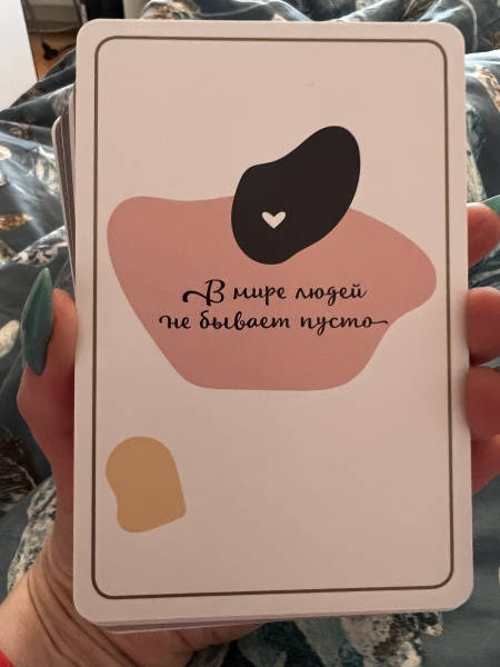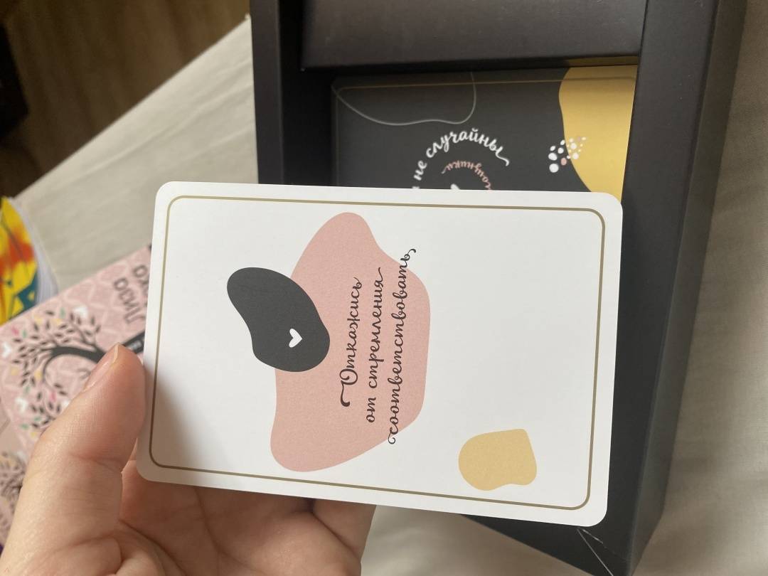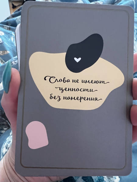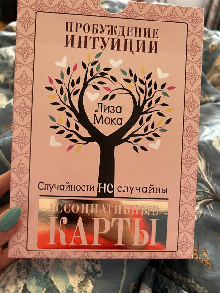 СвернутьПеред вами - уникальная авторская колода интуитивных карт, которые станут вашими незаменимыми помощниками в самых разных жизненных ситуациях: когда вам требуется ответ на сложный вопрос, подсказка, рекомендация, совет, когда вы хотите получить настрой на день, заглянуть в будущее, чтобы увидеть последствия вашего выбора. Интуитивные карты-помощники основаны на авторской системе, которая дает возможность получить доступ к удивительному источнику информации, скрытому в каждом из нас, - к нашему подсознанию.Создательница карт - популярный блогер, психолог и консультант с миллионной аудиторией в Сети, автор уникальных проектов по саморазвитию.В комплекте 52 карты + книга 128 стр.Интуитивные карты «Случайности не случайны. Карты-помощники, пробуждающие интуицию» созданы известным блогером Лизой Мокой. Простые фразы, которые во найдете на этих картах, помогут вам обратиться к собственным интуиции и подсознанию, получить ответ на любой вопрос, поддержку в сложной ситуации и настрой на день. Интуитивные карты-помощники просты в использовании, а подробная инструкция, составленная Лизой Мокой, поможет вам в решении любых задач.