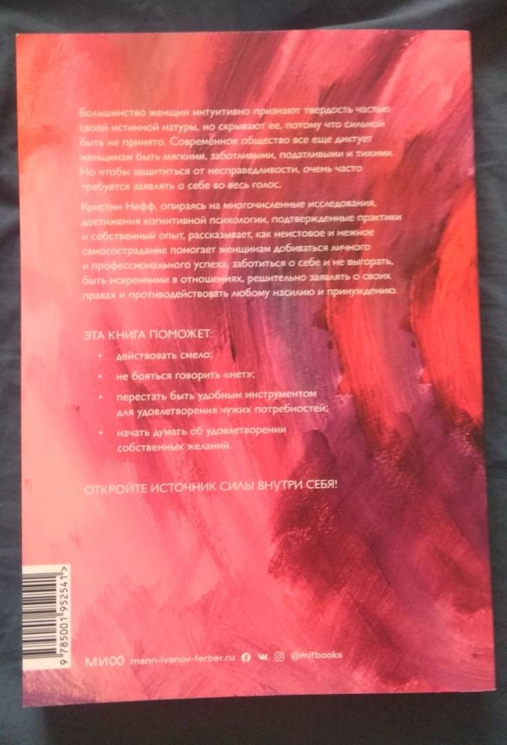 ОписаниеАвтор - ведущий эксперт в теме самосострадания. Основа книги - последние исследования и расширенный подход с учетом гендерной повестки. Права проданы уже на 7 языков. Это мудрая, заботливая и поучительная книга, которая поможет восстановить равновесие внутри себя и научиться твердому и нежному самосостраданию. А оно в свою очередь поможет добиться успеха на работе, заботиться о себе и не выгорать, быть искренним в отношениях, заявить о своих правах - приведёт к более счастливой жизни.Автор - ведущий эксперт в теме самосострадания. Основа книги - последние исследования и расширенный подход с учетом гендерной повестки. Права проданы уже на 7 языков. Это мудрая, заботливая и поучительная книга, которая поможет восстановить равновесие внутри себя и научиться твердому и нежному самосостраданию. А оно в свою очередь поможет добиться успеха на работе, заботиться о себе и не выгорать, быть искренним в отношениях, заявить о своих правах - приведёт к более счастливой жизни.