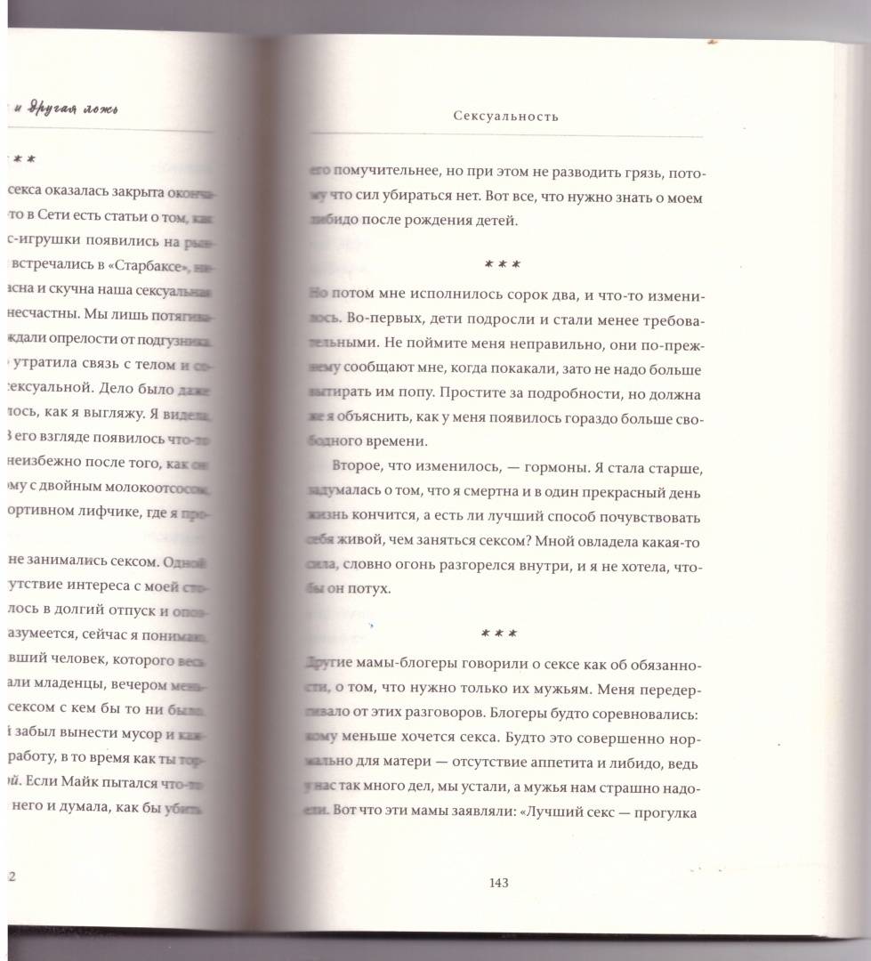 ОписаниеКнига для всех женщин, которые чувствуют себя в ловушке и устали бегать по замкнутому кругу. Смешной, откровенный и вдохновляющий рассказ о кризисе среднего возраста, напоминание о том, что, сколько бы лет вам ни было, у вас еще есть время, чтобы жить ярко и интересно: творить, путешествовать, дружить и любить.Мама, возлюбленная и звезда соцсетей Това Ли пытается решить проблему: что делать, когда понимаешь, что живешь жизнью, на которую не подписывалась? Обязательно ли маме быть Идеальной или достаточно быть Хорошей? Как найти грань между стабильностью и свободой, обязанностями и потребностями? И почему обо всем этом так мало говорят честно?В своей первой книге Това Ли рассказывает историю о том, как она заново открыла себя после рождения детей, шагнув за пределы норм, навязываемых обществом. Това разрушает многие стереотипы о материнстве, о женской сексуальности, о «правильном» и «неправильном» отношении к себе и к другим. Она вдохновляет сбросить оковы, перестать оглядываться на мнение других и стать собой.От автораОднажды утром я проснулась и поняла, что сейчас взорвусь. У меня словно закипела кровь ? и никакой лед бы тут не помог. Мне все надоело, весь мир. Я устала. Никогда прежде я так не злилась и не задыхалась от грусти и пустоты. А главное, я чувствовала себя невероятно, безнадежно одинокой.А ведь со стороны моя жизнь казалась идеальной. На что было жаловаться? Хорошая работа, верный муж, трое детей, которые иногда, конечно, вредничают, но в целом очень даже славные. А ещё дом, собака и все прочие радости. Не жизнь, а мечта каждой девочки. Разве не так нам внушают с малых лет?Но теперь я была вне себя. Мне надоели одни и те же разговоры о том, что приготовить на ужин, и о внеклассных занятиях детей. Надоел супружеский секс, уже восемь лет происходивший по одному сценарию, и надоело, что порой даже такого секса подолгу не было. Я не хотела превращаться в «мамочку». А как же сражать наповал, сводить с ума? Кто налепил на меня ярлык, который противоречит всей моей сущности? Мне претило одеваться «по-мамски», водить «мамскую» машину, носить «мамскую» стрижку и даже быть записанной у кого-то в телефоне как «мама».Я хотела быть собой.Для кого эта книгаДля тех, кому близки темы материнства, семейных отношений, принятия себя и сексуальности.Для женщин, оказавшихся в кризисе и пытающихся найти гармонию с собой.СвернутьКнига для всех женщин, которые чувствуют себя в ловушке и устали бегать по замкнутому кругу. Смешной, откровенный и вдохновляющий рассказ о кризисе среднего возраста, напоминание о том, что, сколько бы лет вам ни было, у вас еще есть время, чтобы жить ярко и интересно: творить, путешествовать, дружить и любить.Мама, возлюбленная и звезда соцсетей Това Ли пытается решить проблему: что делать, когда понимаешь, что живешь жизнью, на которую не подписывалась? Обязательно ли маме быть Идеальной или достаточно быть Хорошей? Как найти грань между стабильностью и свободой, обязанностями и потребностями? И почему обо всем этом так мало говорят честно?В своей первой книге Това Ли рассказывает историю о том, как она заново открыла себя после рождения детей, шагнув за пределы норм, навязываемых обществом. Това разрушает многие стереотипы о материнстве, о женской сексуальности, о «правильном» и «неправильном» отношении к себе и к други