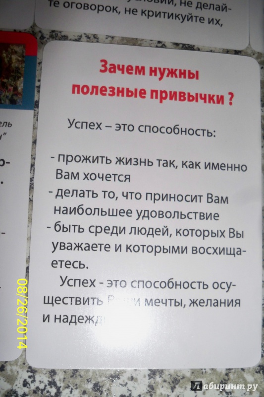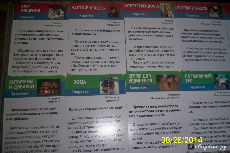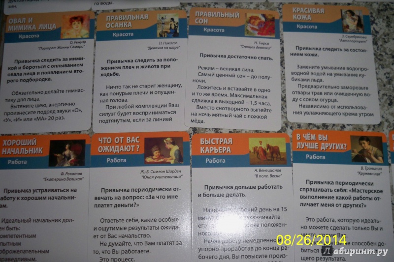 Описание50 маленьких карточек (90х65 мм) с описанием привычек:- здоровье, красота, характер- работа, взаимоотношения - безопасность Полезная привычка - путь к успеху!50 маленьких карточек (90х65 мм) с описанием привычек:- здоровье, красота, характер- работа, взаимоотношения - безопасность Полезная привычка - путь к успеху!