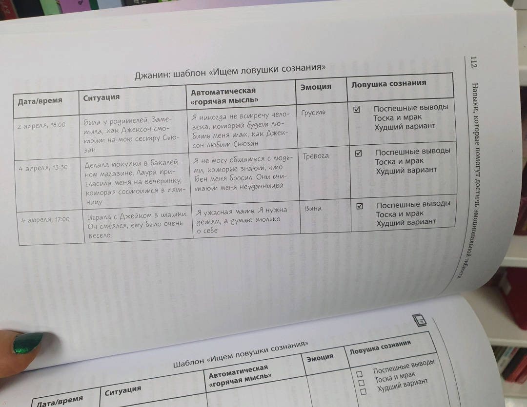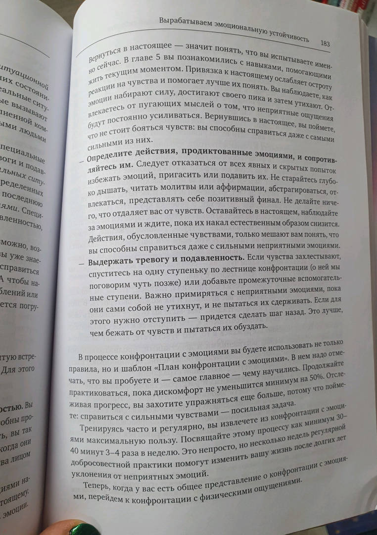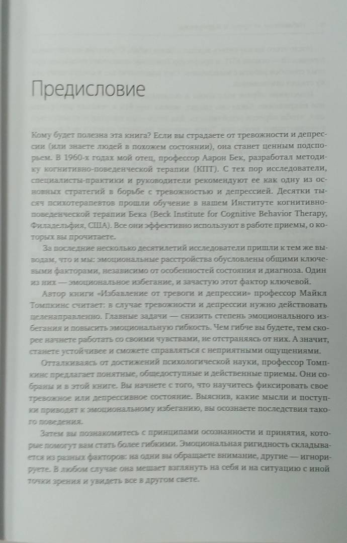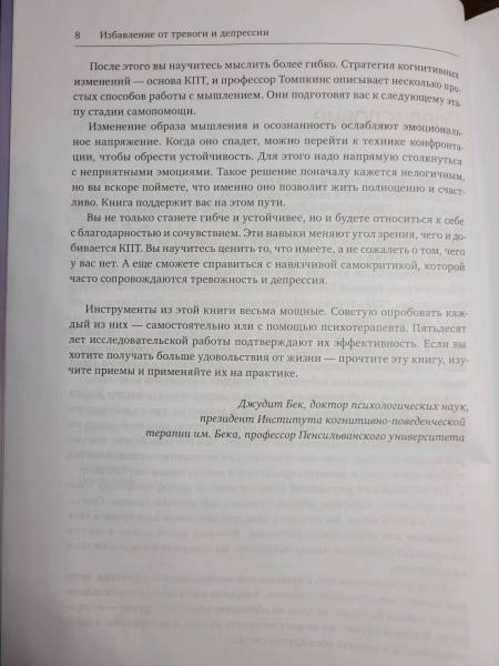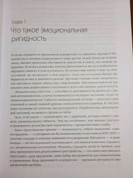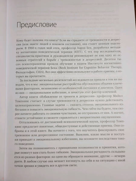 ОписаниеПрактическое руководство по борьбе с тревогой и депрессией. Поможет прочувствовать весь спектр своих эмоций, разрушить барьеры эмоционального избегания и справиться со своими чувствами.Если вы страдаете от тревожности и (или) депрессии, то наверняка меньше всего хотите бередить раны и погружаться в тяжелые чувства. Однако последние исследования в области психологии показывают, что избегание эмоций работает лишь в краткосрочной перспективе. Что вам на самом деле нужно - так это набор работающих инструментов, которые позволят осознать весь спектр своих эмоций. Именно такие инструменты вы найдете в книге.В этом практическом руководстве психолог Майкл Томпкинс предлагает научно обоснованные практики когнитивно-поведенческой терапии (КПТ), которые помогут разрушить барьеры эмоционального избегания.Благодаря им вы сможете:справляться с негативными чувствами;найти стратегии, которые помогут сохранять спокойствие в стрессовых ситуациях;открыть для себя техники расслабления и осознанности;улучшить настроение и самочувствие.Фишки книгиНаучная основа (когнитивно-поведенческая терапия)Структурный подходДля кого книгаДля всех, кто испытывает тревогу и/или подавленность и хочет повысить качество своей жизни.От автораЦель этой книги - познакомить вас с приемами, которые помогут развить эмоциональную гибкость. Чем вы устойчивее, тем меньше грустите и тревожитесь и тем быстрее справляетесь с превратностями судьбы.Здесь представлены приемы - осознанность, гибкое мышление, самосострадание, - с которыми вы бы познакомились и на сеансах КПТ. КПТ - золотой стандарт в лечении тревожности и депрессии. Пятьдесят - и даже больше - лет исследований подтверждают: эти навыки помогают справиться с неприятными состояниями. Неважно, страдаете ли вы от тревоги, уныния, тревожного или депрессивного расстройства, - эта книга вам поможет. Одна книга, одна программа, один набор инструментов для ознакомления и применения. Ведь тревожность и депрессия - признаки ригидности эмоциональной системы.СвернутьПрактическое руководство по борьбе с тревогой и депрессией. Поможет прочувствовать весь спектр своих эмоций, разрушить барьеры эмоционального избегания и справиться со своими чувствами.Если вы страдаете от тревожности и (или) депрессии, то наверняка меньше всего хотите бередить раны и погружаться в тяжелые чувства. Однако последние исследования в области психологии показывают, что избегание эмоций работает лишь в краткосрочной перспективе. Что вам на самом деле нужно - так это набор работающих инструментов, которые позволят осознать весь спектр своих эмоций. Именно такие инструменты вы найдете в книге.В этом практическом руководстве психолог Майкл Томпкинс предлагает научно обоснованные практики когнитивно-поведенческой терапии (КПТ), которые помогут разрушить барьеры эмоционального избегания.Благодаря им вы сможете:справляться с негативными чувствами;найти стратегии, которые помогут сохранять спокойствие в стрессовых ситуациях;открыть для себя техники расслабления и осознанности;улучшить настроение и самочувствие.Фишки книгиНаучная основа (когнитивно-поведенческая терапия)Структурный подходДля кого книгаДля всех, кто испытывает тревогу и/или подавленность и хочет повысить качество своей жизни.От автораЦель этой кн