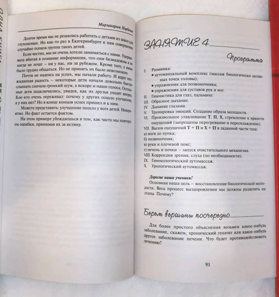 ОписаниеЗдоровье - наш дар, наша возможность, но довольно часто и наша цель, к которой мы стараемся идти всеми доступными путями. Но приходим к ней не всегда - либо недостаточно хотим, либо идем не теми дорогами. Именно поэтому нам часто нужен проводник, который подскажет верное направление и заставит преодолевать трудности. Мирзакарим Норбеков много лет разрабатывал, проверял свою уникальную лечебно-оздоровительную методику и пришел к ошеломительному результату, которым делится с вами в этой книге. Практически любой недуг можно побороть, зная технологию действия. Занимаясь по системе Норбекова, вы сможете откорректировать зрение и слух, вылечить болезни желудочно-кишечного тракта, бороться с сахарным диабетом, болезнями щитовидной железы, болезнями и дефектами кожи и даже вернуть себе свой образ молодости! Омоложение лица, кожи и всего организма в целом - это тоже процесс, который поддается регулированию! В этой книге вы найдете подробные пошаговые описания каждого занятия с рисунками и схемами. Они помогут вам самостоятельно, без постороннего воздействия и вмешательства, запустить механизм самооздоровления организма и вернуть себе энергию и бодрость молодости.Система Мирзакарима Норбекова существует уже не один десяток лет, и через нее успело пройти больше пяти миллионов человек. Популярность системы непрерывно растет.