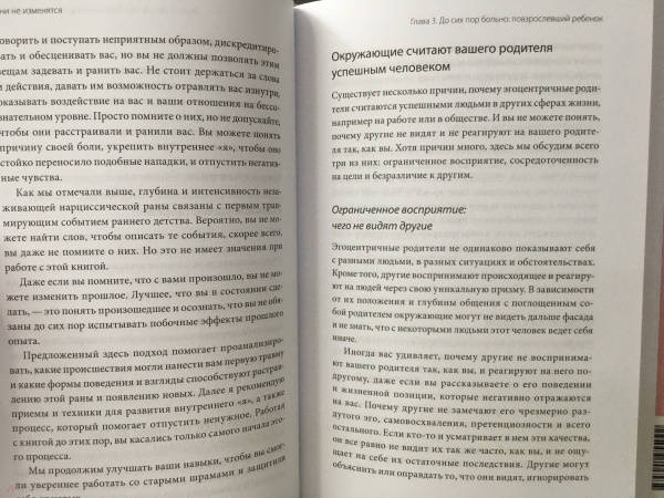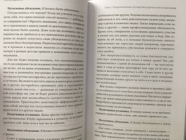 ОписаниеПошаговое руководство от психотерапевта о том, как преодолеть детские травмы, обрести свободу от токсичного влияния родителей и построить с ними здоровые отношения.Родителей не выбирают. Не всем повезло расти с чуткими и понимающими взрослыми. Кому-то достались эгоцентричные и нарциссические родители - они не способны заботиться, игнорируют потребности своих детей и даже требуют поддержки для себя, меняясь ролями.Взрослые дети таких родителей травмированы. Им до сих пор больно. Психотерапевт Нина Браун рассказывает, как залечить душевные раны и обрести точку опоры. Вы сможете:- распознать негативный отпечаток событий из детства на свою жизнь;- перестать фантазировать, что родители изменятся, и не зависеть от их оценок;- ограничить общение с родителями, если оно продолжает разъедать вас, или нормализовать отношения, если вам того хочется.Книга поможет излечиться от боли, вызванной взрослением в токсичной семье, открыть дверь к пониманию самого себя, своих чувств и реакций и, наконец, исцелиться.Для кого книгаДля взрослых детей, которые испытывают трудности в отношениях с родителями и с собой.Для тех, кто стремится освободиться от негативного влияния отца или матери и жить счастливо и полноценно.От автораЕсли дети растут в семье эгоцентричных родителей, то, став взрослыми, они могут столкнуться с затяжными негативными последствиями этих нездоровых отношений. Таких людей бывает легко принудить делать то, что им неприятно, например, с помощью манипуляций, обольщения или запугивания. Им может быть сложно завязывать и поддерживать гармоничные, прочные отношения. Они могут оказаться не способны говорить "нет" и твердо стоять на своем, бывают склонны к негативным установкам и формам поведения как с другими людьми, так и со своими родителями-нарциссами. Отрицательные последствия детских травм продолжают влиять на их здоровье и самооценку, что, в свою очередь, оказывает воздействие на другие аспекты жизни, особенно на личные отношения.Цель этой книги - помочь читателям глубже понять сохраняющееся негативное влияние эгоцентричного отца или матери на их развитие и жизнь. Так как глубокого осознания в чистом виде может быть недостаточно, я также даю рекомендации для положительных личных изменений - упражнения и стратегии, которые помогут устранить отрицательные последствия и стать тем человеком, каким они хотят себя видеть.Я надеюсь, что эта книга воодушевит вас и откроет дверь к пониманию самого себя, своих чувств, реакций и даже некоторых действий. Возможно, вы хотите в себе что-то изменить, и чтение натолкнет вас на мысль, как добиться этих изменений, чтобы освободиться от негативного влияния эгоцентричного отца или матери и начать счастливую и полноценную жизнь.СвернутьПошаговое руководство от психотерапевта о том, как преодолеть детские травмы, обрести свободу от токсичного влияния родителей и построить с ними здоровые отношения.Родителей не выбирают. Не всем повезло расти с чуткими и понимающими взрослыми. Кому-то достались эгоцентричные и нарциссические родители - они не способны заботиться, игнорируют потребности своих детей и даже требуют поддержки для себя, меняясь ролями.Взрослые дети таких родителей травмированы. Им до сих пор больно. Психотерапевт Нина Браун рассказывает, как залечить душевные раны и