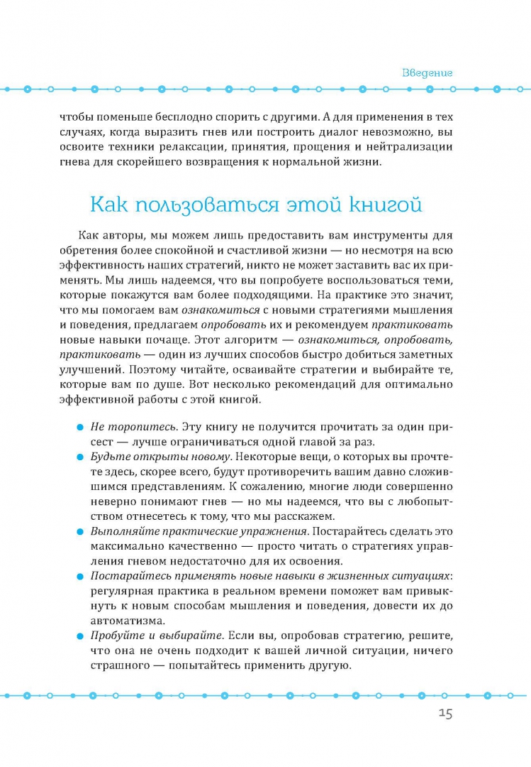 ОписаниеУправление гневом для всех. 10 проверенных стратегий, помогающих контролировать гнев и жить счастливее.Перед вами подробное руководство по управлению гневом, написанное клиническими психологами-практиками с богатым опытом работы. Они помогли многим людям изменить деструктивное поведение и стать более уравновешенными и спокойными даже в ситуациях, когда хочется взорваться и разгромить все вокруг. Вы узнаете, как действовать, если у вас есть проблемы с выражением гнева, вы вспыхиваете, словно спичка, по любому поводу, склонны к громким приступам ярости или, наоборот, к тихой пассивной агрессии. Эта книга поможет разобраться в природе своих негативных эмоций и научиться направлять их в мирное русло вместо того, чтобы срываться на других людей или на самого себя, например, заедая злость или притупляя чувства с помощью алкоголя."Практические рекомендации в книге даны в виде "умного" меню управления гневом, и речь не просто о разумном поведении - вам предлагается выбор действий в той или иной ситуации, подобно выбору в меню ресторана. У всех нас есть свои предпочтения, и такой подход обеспечивает возможность опробовать хоть все стратегии, чтобы выбрать в итоге те, которые кажутся более эффективными. Кроме того, надо учитывать, что проявления гнева всегда имеют место в уникальном контексте отдельно взятой жизни, и только сам человек может решить, как поступить наиболее выгодно для себя". (Говард Кассинов, Реймонд Чип Тафрейт)Книга построена таким образом, что вы сможете прямо в ней вести необходимые записи и выполнять письменные задания - вы найдете множество рабочих листов и бланков для упражнений.СвернутьУправление гневом для всех. 10 проверенных стратегий, помогающих контролировать гнев и жить счастливее.Перед вами подробное руководство по управлению гневом, написанное клиническими психологами-практиками с богатым опытом работы. Они помогли многим людям изменить деструктивное поведение и стать более уравновешенными и спокойными даже в ситуациях, когда хочется взорваться и разгромить все вокруг. Вы узнаете, как действовать, если у вас есть проблемы с выражением гнева, вы вспыхиваете, словно спичка, по любому поводу, склонны к громким приступам ярости или, наоборот, к тихой пассивной агрессии. Эта книга поможет разобраться в природе своих негативных эмоций и научиться направлять их в мирное русло вместо того, чтобы срываться на других людей или на самого себя, например, заедая злость или притупляя чувства с помощью алкоголя."Практические рекомендации в книге даны в виде "умного" меню управления гневом, и речь не просто о разумном поведении - вам предлагается выбор действий в той или иной ситуации, подобно выбору в меню ресторана. У всех нас есть свои предпочтения, и такой подход обеспечивает возможность опробовать хоть все стратегии, чтобы выбрать в итоге те, которые кажутся более эффективными. Кроме того, надо учитывать, что проявления гнева всегда имеют место в уникальном контексте отдельно взятой жизни, и только сам человек может решить, как поступить наиболее выгодно для себя". (Говард Кассинов, Реймонд Чип Тафрейт)Книга построена таким образом, что вы сможете прямо в ней вести необходимые записи и выполнять письменные задания - вы найдете множество рабочих листов и бланков для упражнений.СвернутьСвернуть