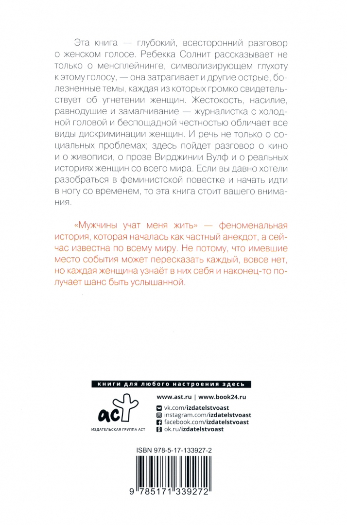 ОписаниеДаже если вы никогда не слышали о Ребекке Солнит и еe работе - вы более чем наверняка оказывались на ее месте. Особенно если вы - женщина. Каждой из нас хоть раз в жизни приходилось выслушивать напыщенного, горделивого мужчину, который терпеливо и снисходительно объяснял нам, словно ребёнку, простые и очевидные истины. Это явление, старое как мир, наконец получило название - "менсплейнинг". Именно Ребeкка Солнит, с очаровательно злой иронией описавшая курьёзный случай на вечеринке, дала жизнь этому термину. Между тем феномен менсплейнинга проливает свет на обширный круг проблем, которые не способно охватить одно эссе. Через несколько лет появилась книга.…местами шутливое, местами хлесткое, но неизменно честное повествование.- The New York TimesДаже если вы никогда не слышали о Ребекке Солнит и еe работе - вы более чем наверняка оказывались на ее месте. Особенно если вы - женщина. Каждой из нас хоть раз в жизни приходилось выслушивать напыщенного, горделивого мужчину, который терпеливо и снисходительно объяснял нам, словно ребёнку, простые и очевидные истины. Это явление, старое как мир, наконец получило название - "менсплейнинг". Именно Ребeкка Солнит, с очаровательно злой иронией описавшая курьёзный случай на вечеринке, дала жизнь этому термину. Между тем феномен менсплейнинга проливает свет на обширный круг проблем, которые не способно охватить одно эссе. Через несколько лет появилась книга.…местами шутливое, местами хлесткое, но неизменно честное повествование.- The New York Times