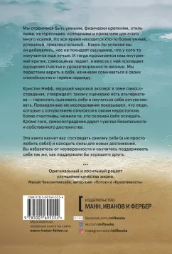 ОписаниеДоктор Нефф, ведущий мировой эксперт в теме самосострадания, объясняет, как исправить деструктивные эмоциональные паттерны, чтобы быть здоровее, счастливее и эффективнее.В нашей культуре поощряется требовательность к себе. Мы стремимся быть лучше, привлекательнее, сильнее, чем окружающие, прилагаем для этого много усилий, но на деле всегда находится кто-то более умный, успешный, привлекательный, чем вы. И когда это обнаруживается, внутренний критик просыпается, самооценка падает, а вместе с ней притупляется ощущение счастья и удовлетворенности.Однако есть альтернатива самооценке — самосострадание. Согласно результатам исследования доктора Кристин Нефф, люди, которые с сочувствием относятся к себе и своим недостаткам, более счастливы, нежели те, кто склонен себя осуждать. Кроме того, самосострадание дает нам чувство безопасности и собственного достоинства, что очень важно, особенно в те времена, когда падает самооценка. Самосострадание подразумевает три компонента (осознанность, доброта к себе и восприятие себя как части сообщества).Из книги вы узнаете, почему важно сострадать самому себе (а не просто любить себя!) и поддерживать себя так же, как вы поддержали бы хорошего друга. В книге есть практические упражнения и истории, благодаря которым вы научитесь быть к себе по-настоящему добрым.Для кого эта книгаДля всех, кому необходима поддержка и забота.Для тех, кто страдает от низкой самооценки .Для тех, кто слишком критичен по отношению к себе и часто недоволен собой.От автораБеспрерывно насыщая свою потребность в положительной самооценке, мы немного напоминаем человека, объедающегося конфетами. Мы ловим кайф от сахара, но тут его уровень начинает падать. И маятник сразу движется в другую сторону, наступает отчаяние: мы понимаем, что, как бы нам этого ни хотелось, мы не можем всегда винить в своих проблемах других людей. Мы не можем всегда чувствовать себя особенными и выше среднего уровня. Часто это приводит к катастрофическим результатам. Мы смотримся в зеркало, нам не нравится то, что мы видим (как в фигуральном, так и в буквальном смысле), и нам становится стыдно. Признав наконец какой-то свой недостаток или промах, большинство из нас обходится с собой невероятно сурово. «Я недостаточно хорош. Я ничего не стою». Если честность связана со столь строгим осуждением, неудивительно, что мы скрываем от себя правду.В случаях, когда провести себя нелегко — например, при сравнении своего веса с весом фотомоделей или своего счета в банке со счетами богатых и преуспевающих людей, — мы причиняем себе невероятную душевную боль. Мы теряем веру в себя, начинаем сомневаться в своих способностях и утрачиваем надежду. В этом плачевном состоянии мы, конечно, бросаемся еще больше винить себя, твердить, какие мы пассивные неудачники, и увязаем все крепче и крепче.И пусть даже нам удается взять себя в руки — идеал человека, считающегося «достаточно хорошим», все время кажется мучительно недосягаемым. Мы должны быть и умными, и физически крепкими, и стильными, и интересными, и преуспевающими, и сексуальными. Ах да, и одухотворенными тоже. И каких бы успехов мы ни добивались, нас не покидает ощущение, что у кого-то получается еще лучше. Этот образ мыслей приводит к шокирующим результатам: миллионы людей вынуждены каждый день принимать лек