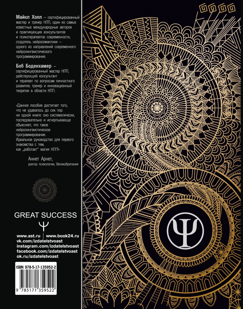 ОписаниеЧто такое НЛП и как максимально эффективно использовать приемы этого знаменитого направления в практической психологии и психотерапии? Новому изданию удалось ответить на вопросы так, как не удавалось до сих пор ни одной книге: от простого к сложному, с объяснением всех терминов, без спекуляций, искажений и "авторских" трактовок. Отлично структурированное и профессионально организованное, отличающееся широким набором упражнений и методов, способствующих надежному усвоению материала, издание предоставляет читателю превосходную возможность получить все лучшее из НЛП как для удовлетворения первого любопытства, так и для повышения своей профессиональной квалификации и компетенции.Майкл Холл и Боб Боденхамер - сертифицированные мастера и тренеры НЛП, одни из самых известных международных авторов и практикующих консультантов и психотерапевтов современности.Что такое НЛП и как максимально эффективно использовать приемы этого знаменитого направления в практической психологии и психотерапии? Новому изданию удалось ответить на вопросы так, как не удавалось до сих пор ни одной книге: от простого к сложному, с объяснением всех терминов, без спекуляций, искажений и "авторских" трактовок. Отлично структурированное и профессионально организованное, отличающееся широким набором упражнений и методов, способствующих надежному усвоению материала, издание предоставляет читателю превосходную возможность получить все лучшее из НЛП как для удовлетворения первого любопытства, так и для повышения своей профессиональной квалификации и компетенции.Майкл Холл и Боб Боденхамер - сертифицированные мастера и тренеры НЛП, одни из самых известных международных авторов и практикующих консультантов и психотерапевтов современности.