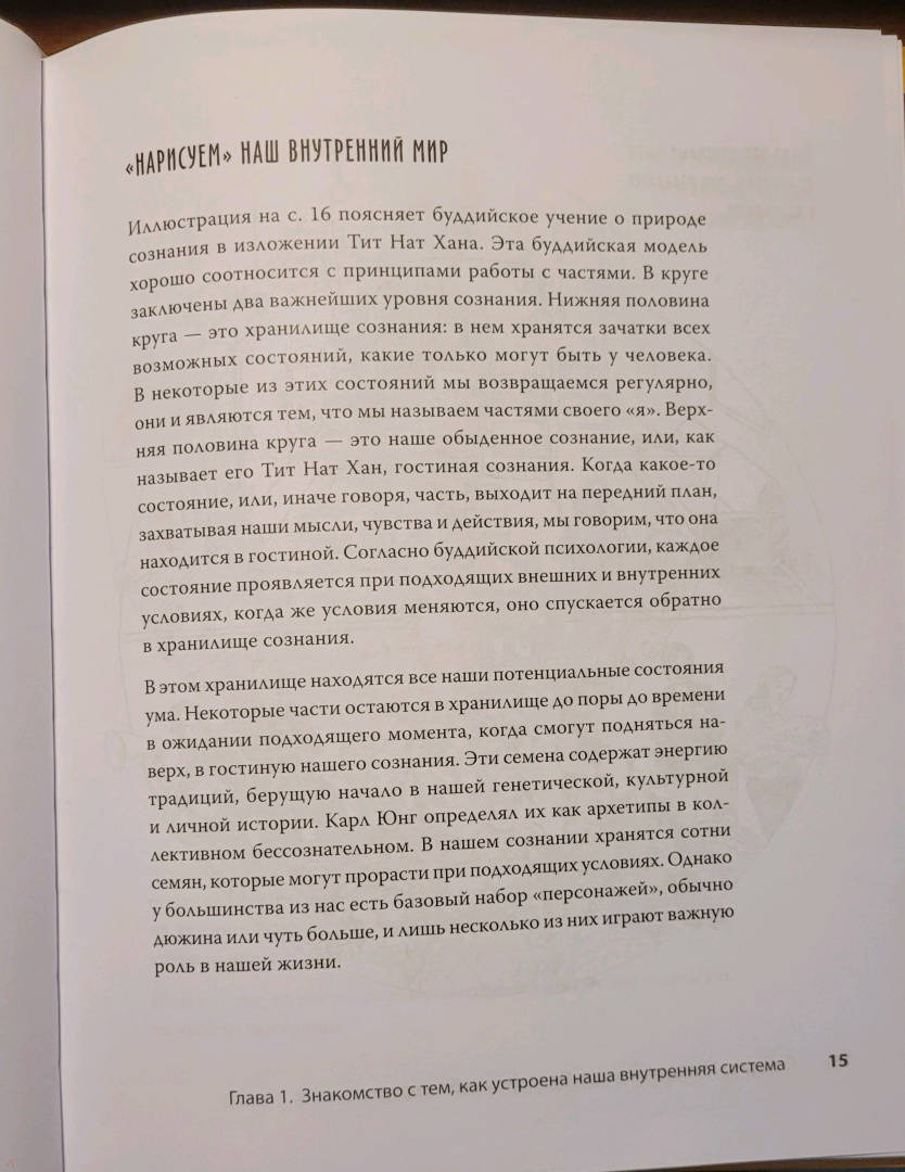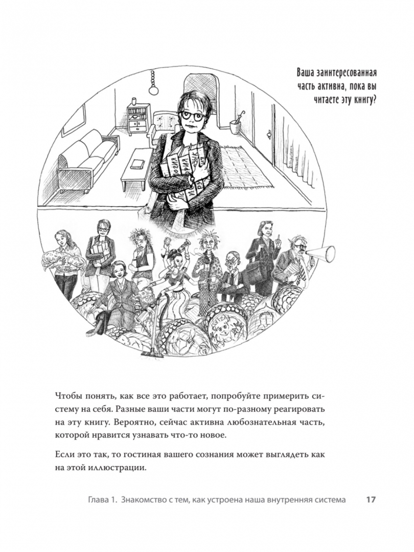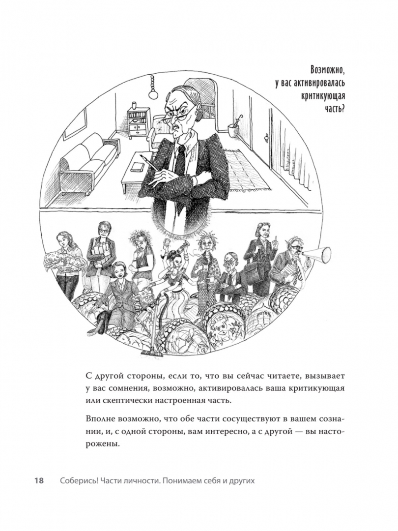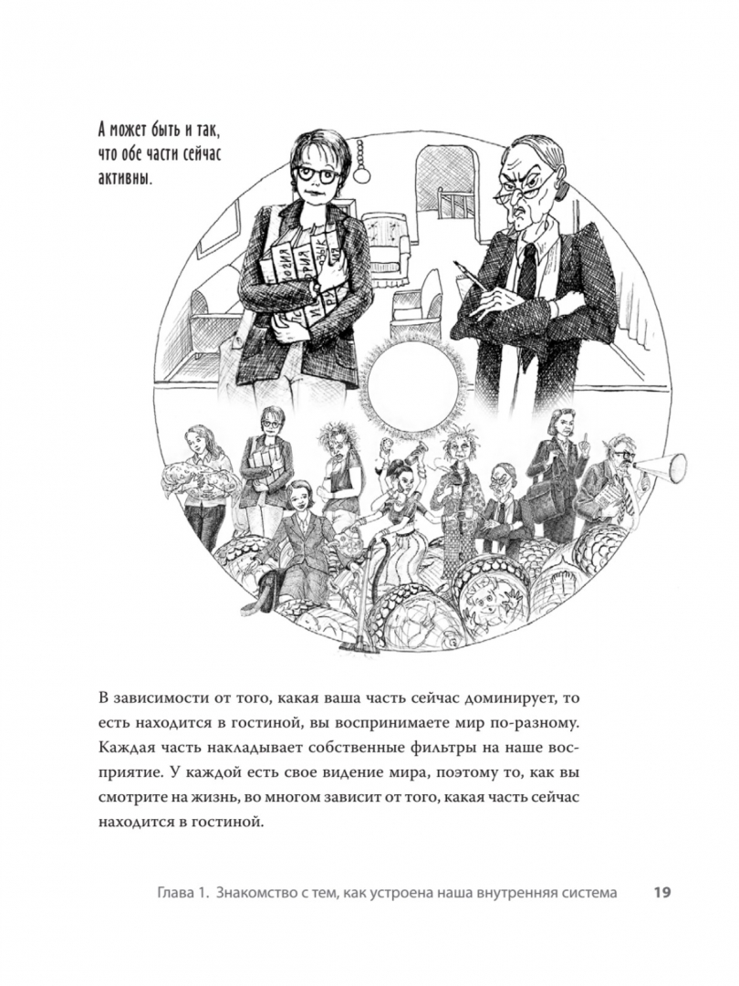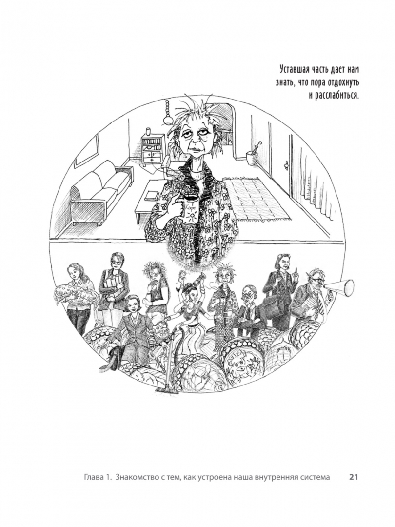 ОписаниеИногда вы сами на себя не похожи. Злитесь или боитесь и не понимаете почему. Снова и снова разыгрываете проблемный сценарий в отношениях с любимым человеком. Чувствуете, что внутри вас происходит битва. Не можете оказаться от вредной привычки и сами себя за это ненавидите. А все потому, что ваш внутренний психологический мир состоит из частей. Каждая часть имеет свои желания и цели. Благодаря доступному языку и выразительным иллюстрациям книга научит вас понимать все ваши части и делать так, чтобы они работали на вас, а не растаскивали ваши силы в разные стороны.Иногда вы сами на себя не похожи. Злитесь или боитесь и не понимаете почему. Снова и снова разыгрываете проблемный сценарий в отношениях с любимым человеком. Чувствуете, что внутри вас происходит битва. Не можете оказаться от вредной привычки и сами себя за это ненавидите. А все потому, что ваш внутренний психологический мир состоит из частей. Каждая часть имеет свои желания и цели. Благодаря доступному языку и выразительным иллюстрациям книга научит вас понимать все ваши части и делать так, чтобы они работали на вас, а не растаскивали ваши силы в разные стороны.