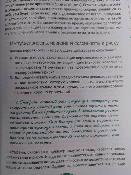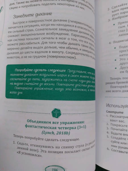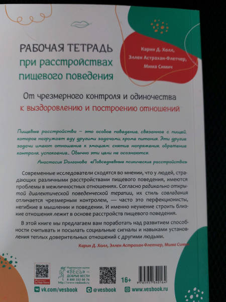 ОписаниеНаверняка вы уже пробовали преодолеть расстройство пищевого поведения (РПП) - пытаясь жестко регулировать свои эмоции и поступки. Однако многие люди, столкнувшиеся с подобной проблемой, на самом деле уже страдают от чрезмерного контроля - состояния, характеризующегося негибкостью и перфекционизмом. Эти качества затрудняют создание личных и социальных связей, что в свою очередь подпитывает расстройство - человек начинает удовлетворять потребности самого разного порядка в отношениях с едой.В этой рабочей тетради предложены упражнения, основанные на радикально открытой диалектической поведенческой терапии (РО ДПТ) - научно обоснованном методе работы с людьми с чрезмерным контролем. С помощью этих практик вы избавитесь от нездоровых стратегий совладания, которые заставляют вас чувствовать себя изолированными и одинокими. А также приобретете эффективные навыки установления и укрепления отношений, доверия и близости.Эта книга поможет создать надежную сеть поддержки, чтобы двигаться по пути к осмысленной жизни и полному выздоровлению от расстройства пищевого поведения.СвернутьНаверняка вы уже пробовали преодолеть расстройство пищевого поведения (РПП) - пытаясь жестко регулировать свои эмоции и поступки. Однако многие люди, столкнувшиеся с подобной проблемой, на самом деле уже страдают от чрезмерного контроля - состояния, характеризующегося негибкостью и перфекционизмом. Эти качества затрудняют создание личных и социальных связей, что в свою очередь подпитывает расстройство - человек начинает удовлетворять потребности самого разного порядка в отношениях с едой.В этой рабочей тетради предложены упражнения, основанные на радикально открытой диалектической поведенческой терапии (РО ДПТ) - научно обоснованном методе работы с людьми с чрезмерным контролем. С помощью этих практик вы избавитесь от нездоровых стратегий совладания, которые заставляют вас чувствовать себя изолированными и одинокими. А также приобретете эффективные навыки установления и укрепления отношений, доверия и близости.Эта книга поможет создать надежную сеть поддержки, чтобы двигаться по пути к осмысленной жизни и полному выздоровлению от расстройства пищевого поведения.СвернутьСвернуть